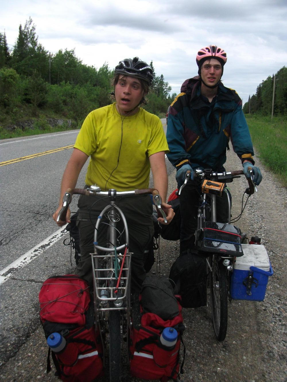 After an hour or so the rain eased again, but we knew, thanks to Vivian’s I-phone, (which was useful sometimes) that more heavy rain was on the way. We could only make it another fifteen kilometres before the dark clouds rolled in again, but that was enough time for us to meet two extremely interesting cycle tourists coming the other way. I’m not sure I remember their names correctly, but I think the taller, thinner one was named Austin Healy, and the other, slightly odd looking one, we’ll call Bryan. They were from Michigan, from which they had begun cycling just two weeks earlier, although they were at the beginning of a journey of a year and a half. I was jealous - they still clearly had the excited buzz that being at the beginning of a long trip brings, with the anticipation of all that lay ahead of them. But I was also seriously impressed, particularly with Bryan, because he revealed that he had built the bikes himself. And by that I don’t mean that he’d stuck the components together, but that he had actually built the bikes himself, including the frames. “I had to learn to weld” he said, modestly, whilst hitching his trousers up too high like Simon Cowell.