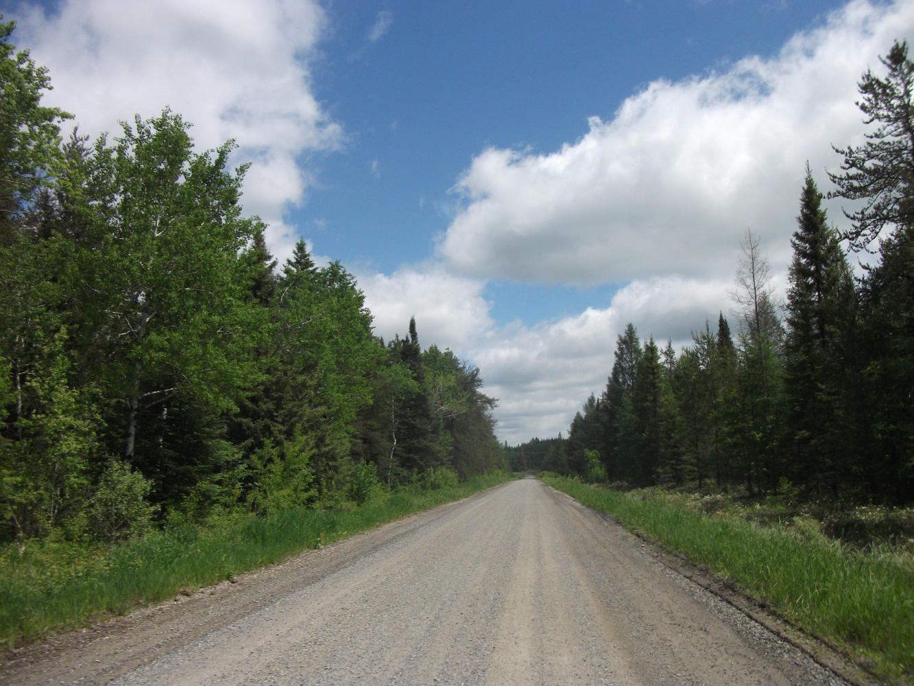 Vivian got up early to start cycling. I was tired (I wonder why) and took my time, so she set off without me, hopefully in the right direction. She had probably an hour and a half start on me by the time I finally dragged myself up and back out onto the road. It was a cloudy morning, but that was alright because there were no flies. Sadly, however, the road was busy with trucks now for some reason. After about twenty kilometres I came to a turn where I could get off this road and take small back roads. It was by far my better option. But what about Vivian? She definitely would have stayed on the main road rather than take these small roads, and she’d probably sit and wait for me somewhere, but not forever. This was my only chance to get off the highways in all of Ontario, and I decided that I had to take it. I resolved to go fast to Fort Frances, so that I could use wifi to contact Vivian there so that we could reunite.