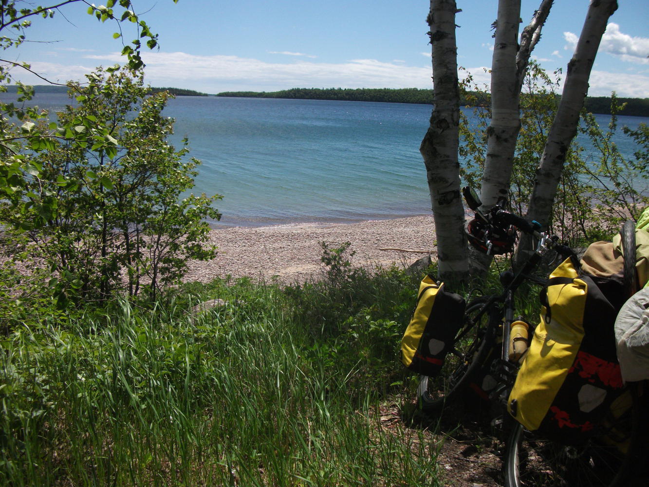 Anyway, after an uneventful, relatively safe cycle up to Nipigon I decided to head east on the #17 highway when it split in two. I had originally planned to go on the more northern route, the #11 highway, but I’d changed my mind after hearing from Frank that almost all of the truckers took that route. The #17 had a bad reputation for being dangerous for cycling because of the lack of paved shoulders, but for a man happy to use gravel shoulders, that was not a problem. In any case, Frank had also reassured me that the reputation was not deserved, and it was actually not an especially busy road, as all the truck traffic went the other way.