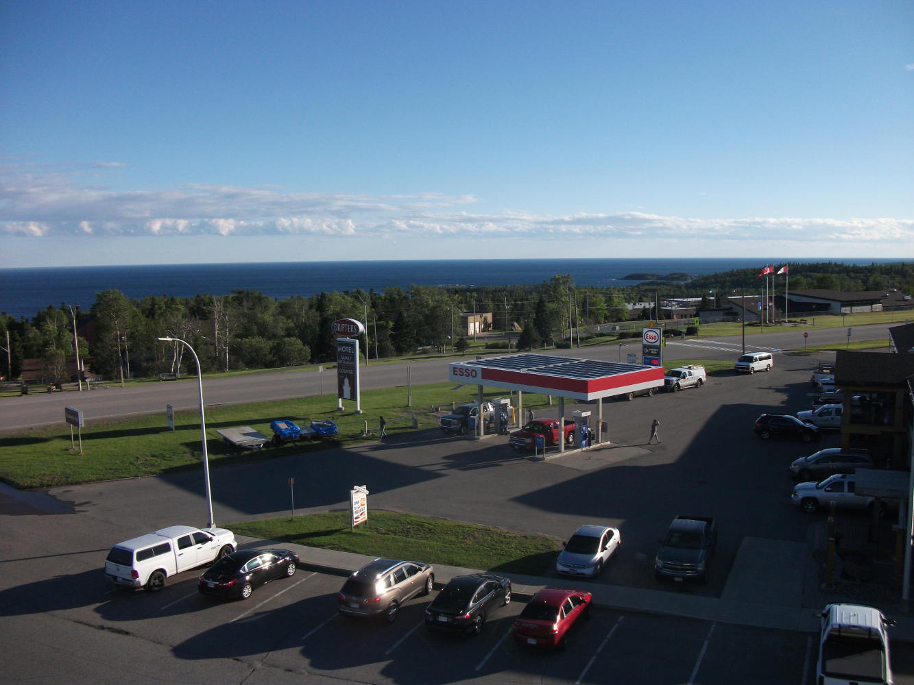 The route also took me along the northern shore of Lake Superior, occasionally offering great views as the road climbed and fell over a disheartening number of big hills. The next day I had my sights firmly set on getting to the town of Schreiber to watch England play Slovakia and I made it thanks to my steely resolve and a favourable tailwind. Sadly my resolve was not matched by the England football players and the game was hardly worth watching, especially as I did so using the wifi outside of a gas station and me and my laptop got periodically pummelled by strong wind and rain.