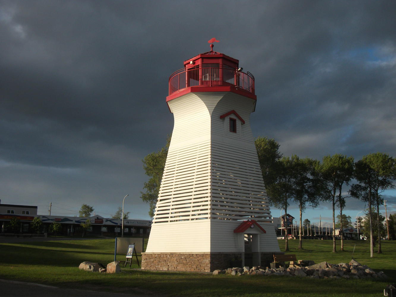 Terrace Bay was a nice enough little town, and offered an interesting break as I went to explore the local lighthouse, curiously positioned in the middle of town. It was set up for tourists and I went in alone and climbed the steps to look out on a magnificent view of a gas station. I thought it rather a cruel trick to put it here in the middle of town, just close enough to the lake to entice ships to wreck on the promenade perhaps.