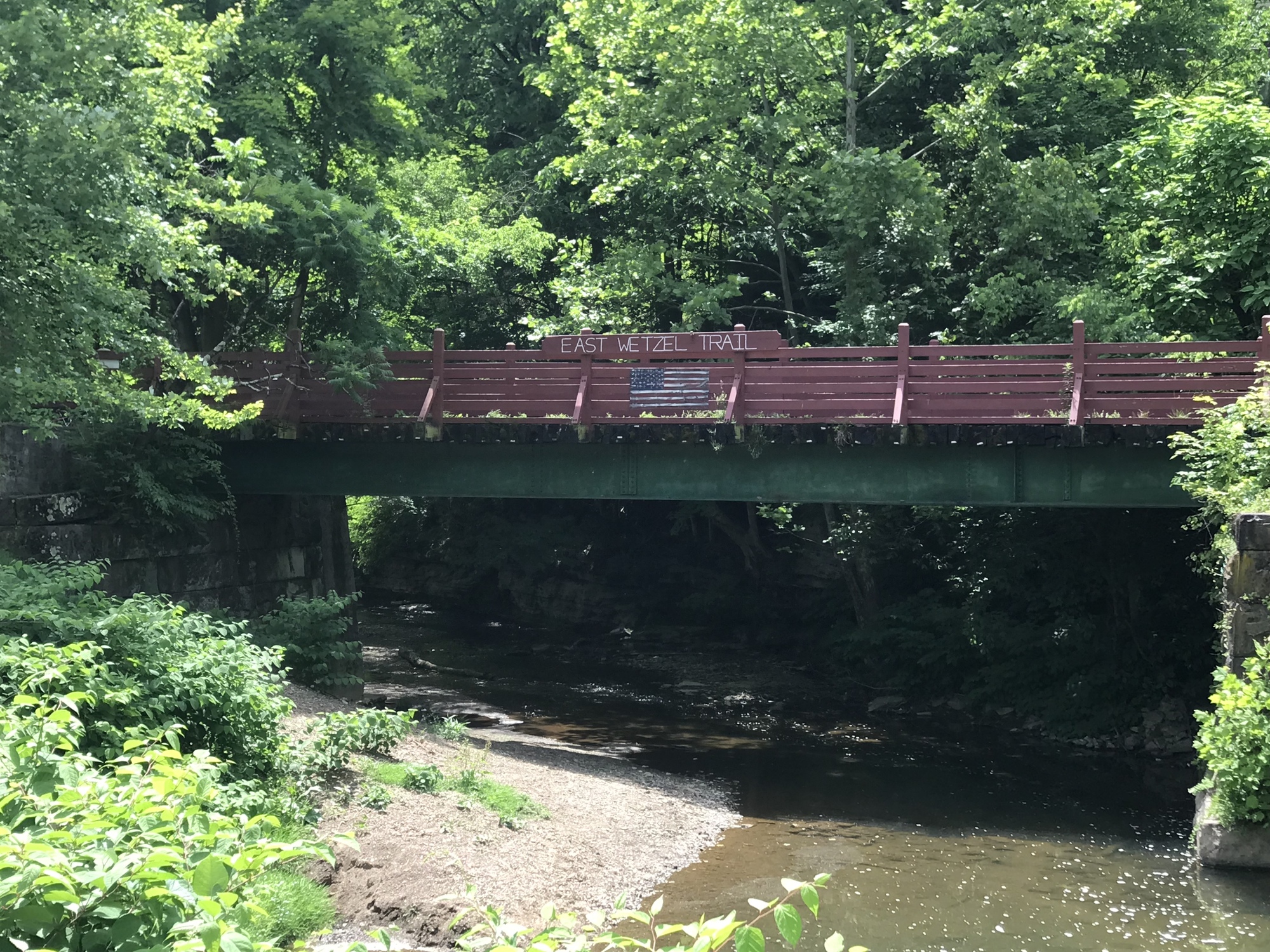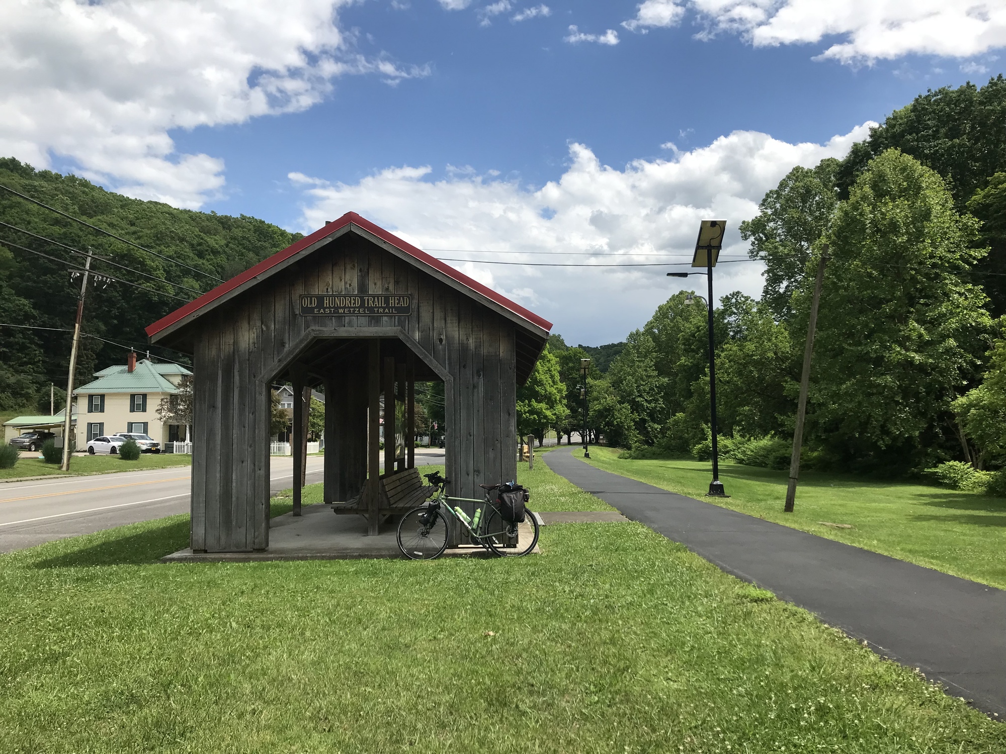 In town, I stopped at the 4 Sisters Market, grabbed some food for later, and continued onward. A brief stop at a local hardware was productive because they let me borrow a 25T star-bit screwdriver to adjust my brakes. Then I headed over to the East Wetzel Trail. Although only 1.5 miles long, it’s in very good shape and right in the center of town. Hundred is the polar opposite of Littleton. Although the economic climate is essentially the same, the citizens have worked to keep the town going and to maintain some level of prosperity. I liked Hundred, very much.