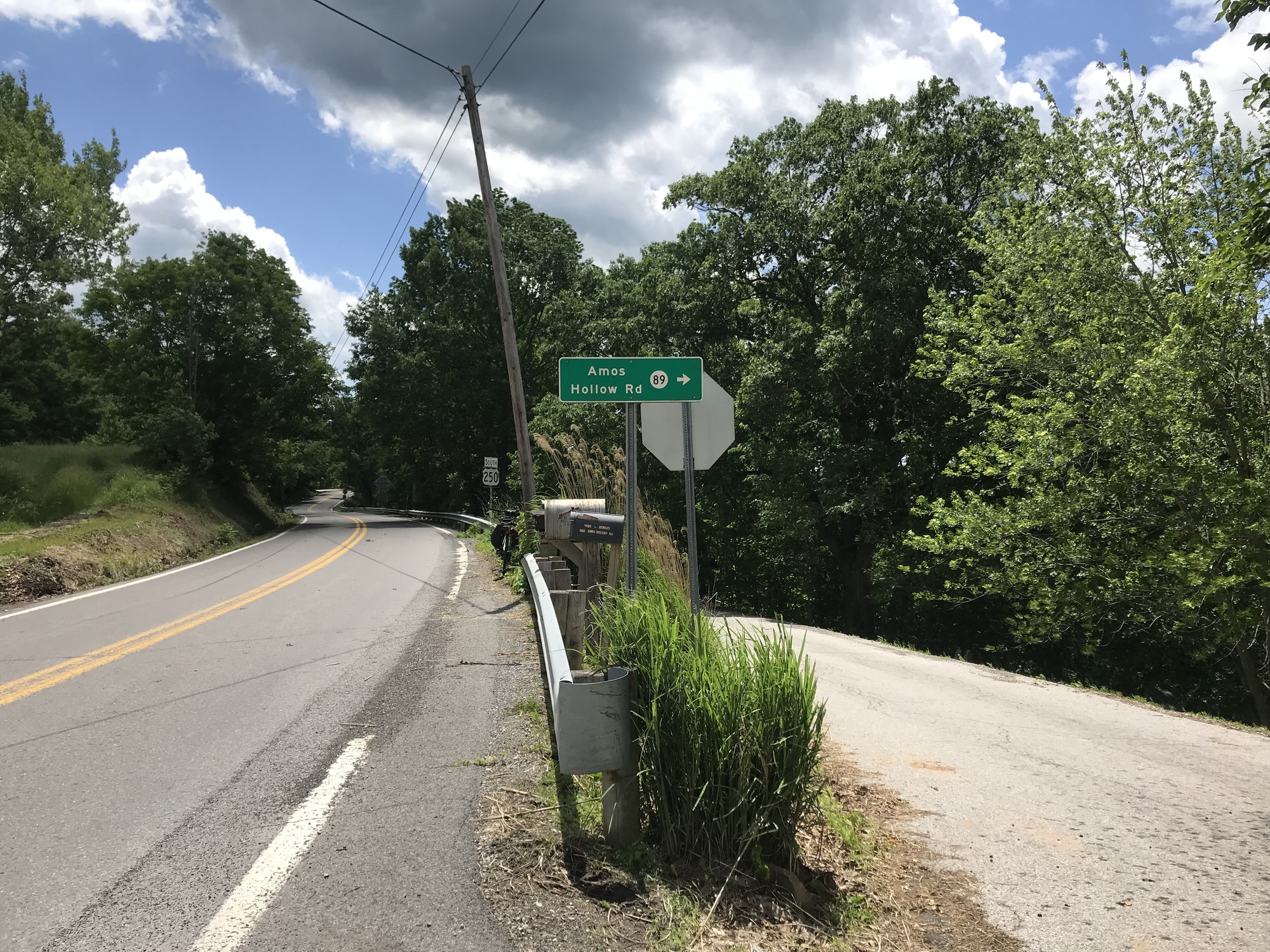 By my reckoning, I had about 10 more miles to cover before ending the day. They turned out to be memorable with a couple of big climbs and a heavy rain storm that happened with a little over a mile to go. The route called for taking SR-7 out of Hundred for about 3 miles. Of course, there was construction on a long hill. The construction guys directed me ride on the freshly resurfaced asphalt lane so I was away from the traffic while climbing. It was very nice and smooth. Eventually, I turned off onto Willey Fork Road.