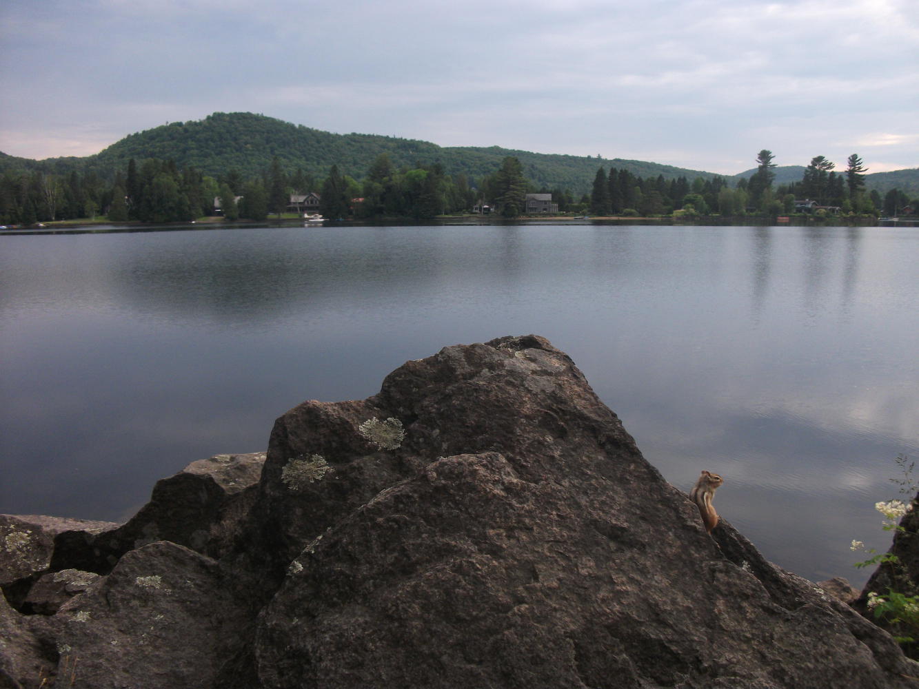 I tried to put a positive spin on things. At least without my laptop I could concentrate on being completely in the moment without any technology at all to mess up the enjoyment of cycle touring in such a great place. That evening I sat by a calm and mildly reflective lake next to the trail. I marvelled at such a serene environment. For the first time in months I could take a break from cycling without the sound of a highway nearby. Instead I could listen to the birds sing, and watch happily as a chipmunk hopped up onto the rocks in front of me, as if he too wanted to soak up the atmosphere and the view.