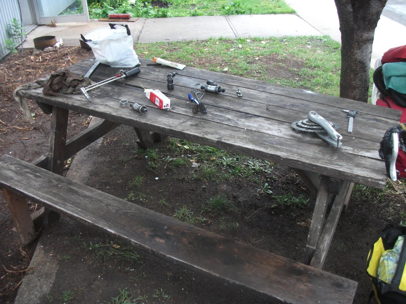 As I’d been cycling out of Montreal with Daniel I had noticed that my bottom bracket was broken. It was pretty frustrating timing, as I’d just had three days off when I could have fixed it, but hadn’t. Now I was worried about whether it would make it all the way to Halifax. I had a tough time schedule now, and a mechanical breakdown was not something I could afford. Then Meghan had stepped in, and volunteered Julien’s services as a bike mechanic. He found me a second-hand bottom bracket that we fitted, and I also replaced the middle chainring with a spare that I had been carrying since Siberia. The original had become so worn that for some days it had been unusable and I’d been having to get by on just the small chainring. Now, thanks to Julien and VeloCentrix, I had a working bike again, and I was delighted.