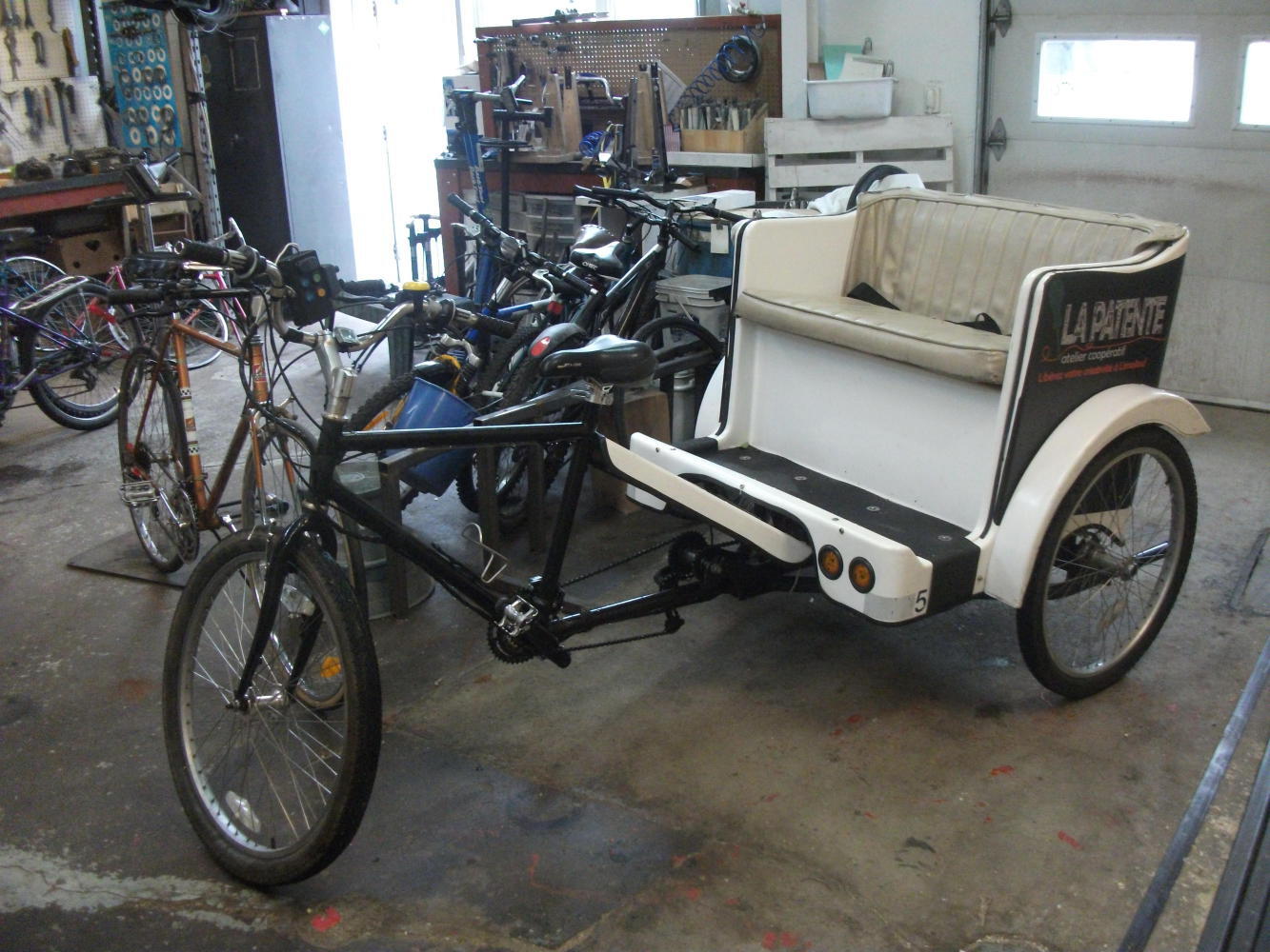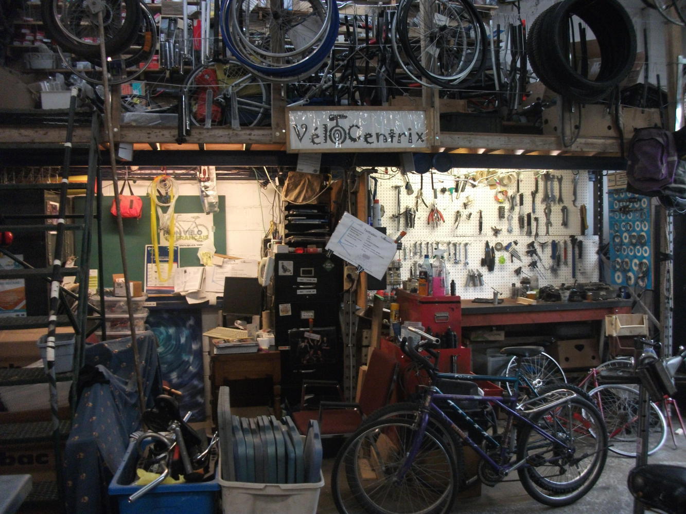 Once the rain eased a little I continued on to VeloCentrix, a non-profit bicycle workshop where I had arranged to meet a man named Julien. Now, way back in 2010 I had been cycling through Quebec in the opposite direction from that which I had just come, and I’d encountered a local cycle tourist by the name of Meghan. We rode together for a few days to Montreal, and became friends. Now that I was back in Quebec we’d arranged to cycle together for a few days again, north from Quebec City this time, with Meghan’s boyfriend Julien also joining us. As luck would have it they worked for this bike workshop, and I’d arranged to meet Julien today, because my overworked bike was in need of a little TLC.
