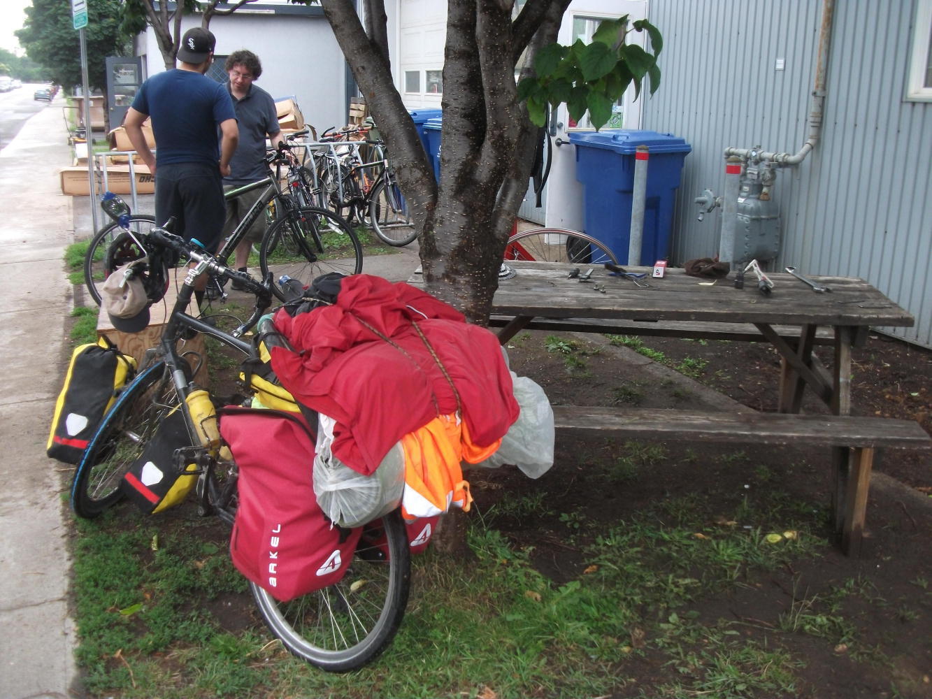 I pulled up to her lovely big house and she came out to greet me, though our moment of reunion was slightly interrupted by one of her neighbours, who’d spotted me and had come over to ask me about my brand new, bright red Arkel panniers.