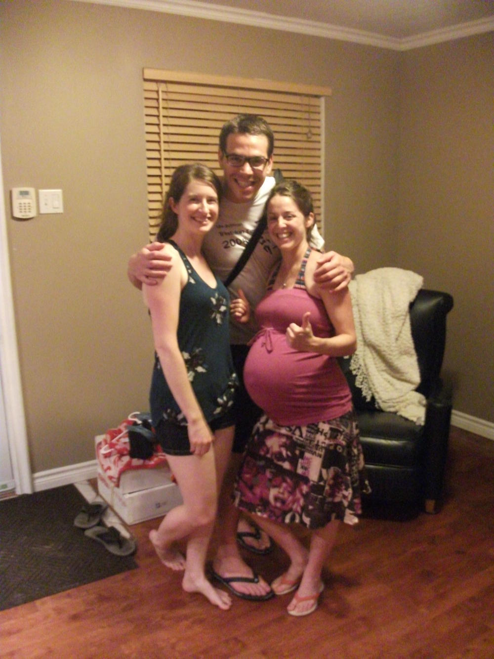 I was still enjoying the pool when Simon and Marie-Claude arrived. They had been Meggie’s flatmates six years ago (in a slightly murky student apartment - how times change!) and now came over for the evening so that we could all be reunited again. Simon was his usual humorous self, joking around and playing the fool as he dived into the pool. Things had also changed for them, however, and Marie-Claude arrived looking much more fat then usual. I was worried about giving her the traditional two kisses, lest I get too close and bounce right off. She was nine months pregnant, and due any day.