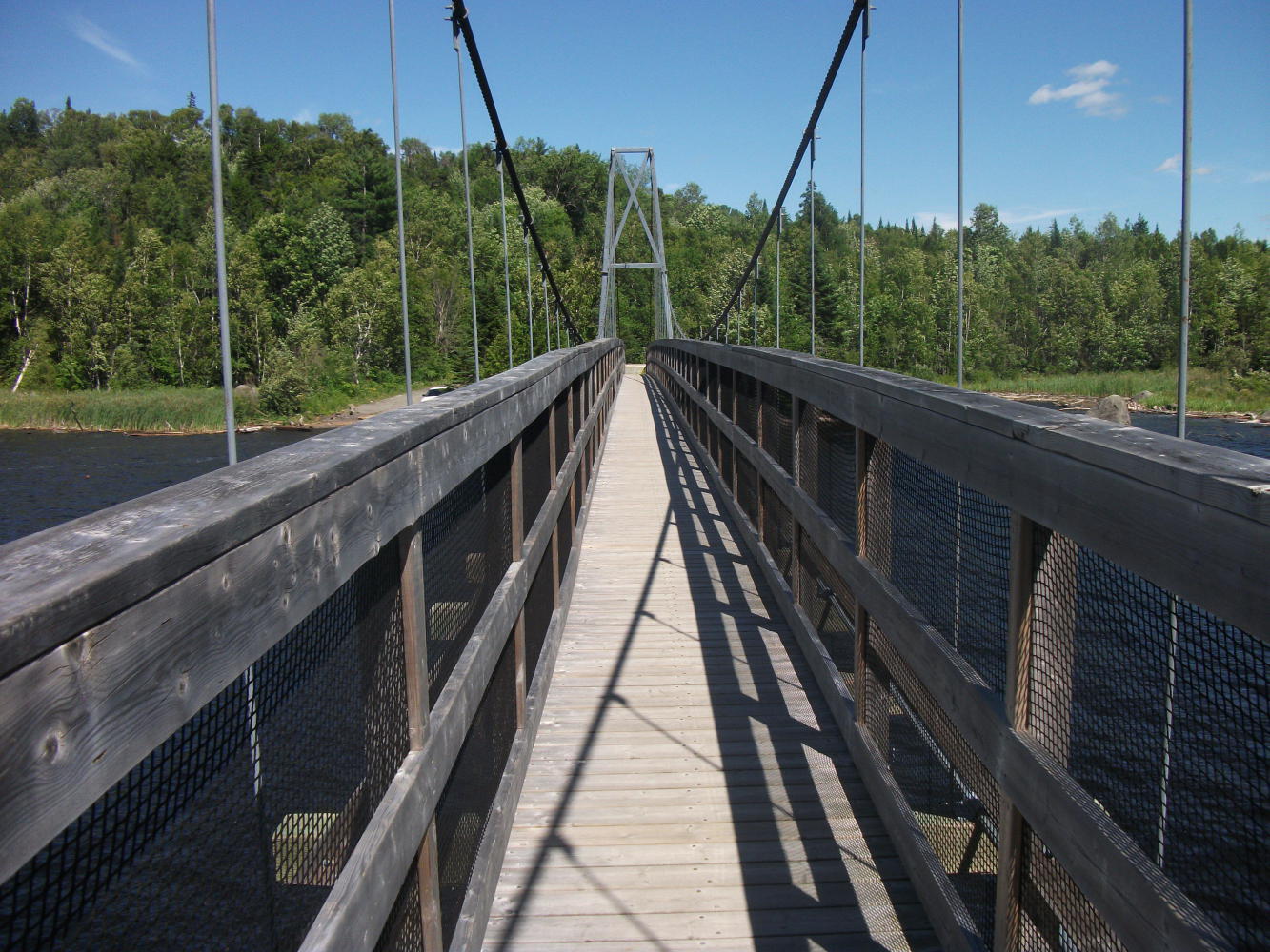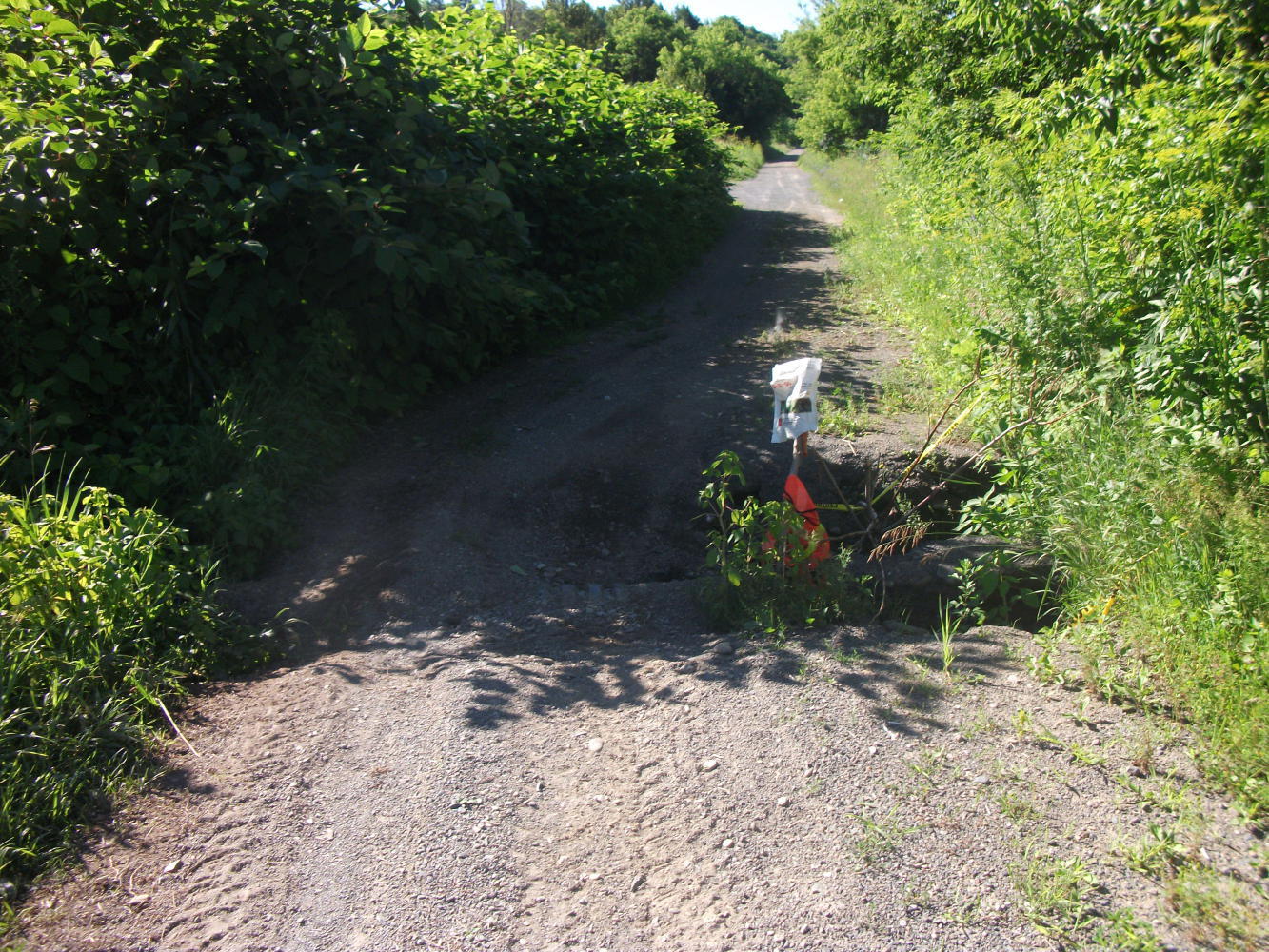 At one point I had a nice alternative to the highway, following an old road down to the river. I'd been told that this was a good way to cycle, because a vehicle bridge that once stood on this road was no longer there, and had been replaced only by a pedestrian/cycle bridge. This meant of course that there was no vehicular traffic at all on this road. I did worry slightly that the road/bridge might somehow not be passable for me as the undergrowth increased on either side of me and I went further and further. If I dead-ended here I would have a very long way to backtrack.