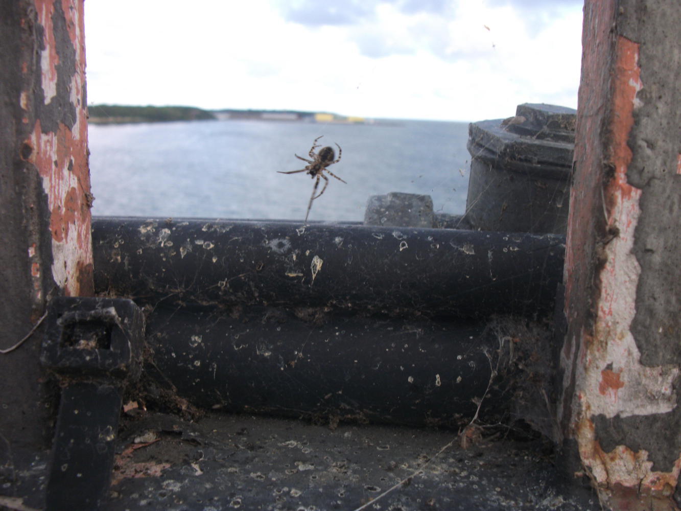 Before very long we reached a big bridge. "This is the spider bridge!" Dea said with some excitement. "Let's see if they're still here!" She was referring, of course, to the bridge that I rode across three years earlier, that was written about in some detail on my blog post A bridge full of spiders, possibly because there was nothing more interesting to write about in Denmark. I'd spotted, as I cycled over this bridge in 2013, that there were hundreds of little spiders in the railings. All the same type of spider they were, they had a complete monopoly over the bridge. Would they still be there? I was keen to find out.