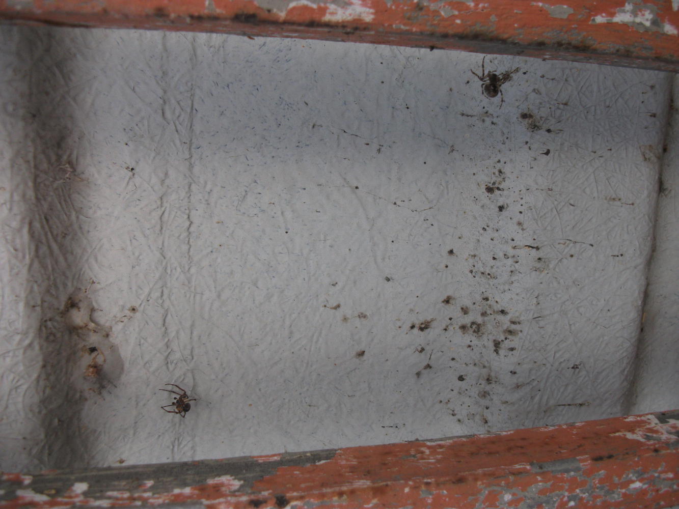 At first it looked like they might have moved to another bridge, because the first few railings there weren't any spiders. But it was a windy day, and when we came to a section where a white board blocked out the wind, well, there they all were. Hundreds of the little spiders. It was good to see them again. I wondered if some of the bigger ones were little babies the last time I'd passed by. They had been living their lives on this one bridge, never knowing anything of the world I'd circled since I last saw them.