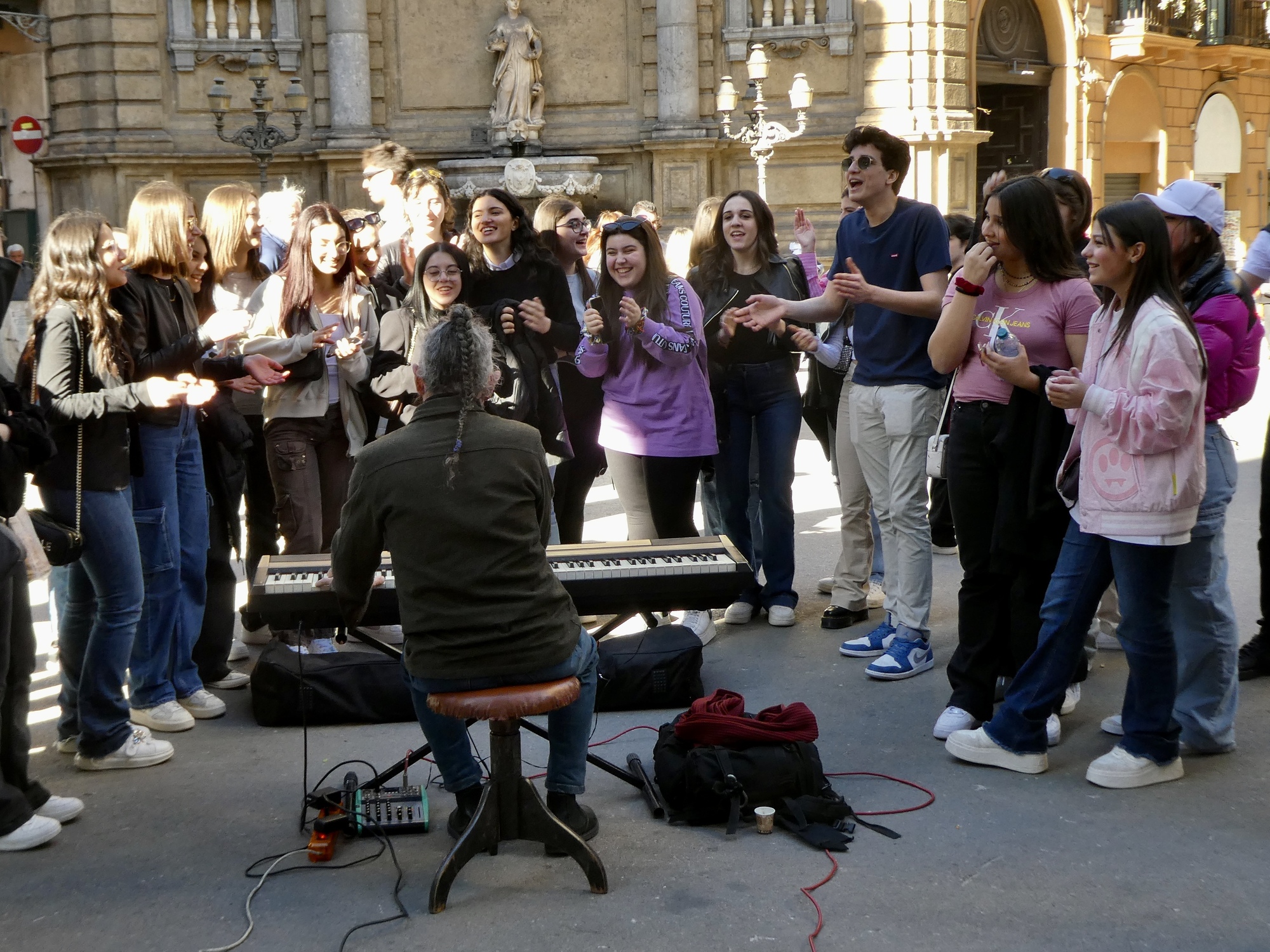On the Quattro Canti, the historical center of the city. I think every time we’ve passed through it there’s been a different musician or performer drawing a crowd.