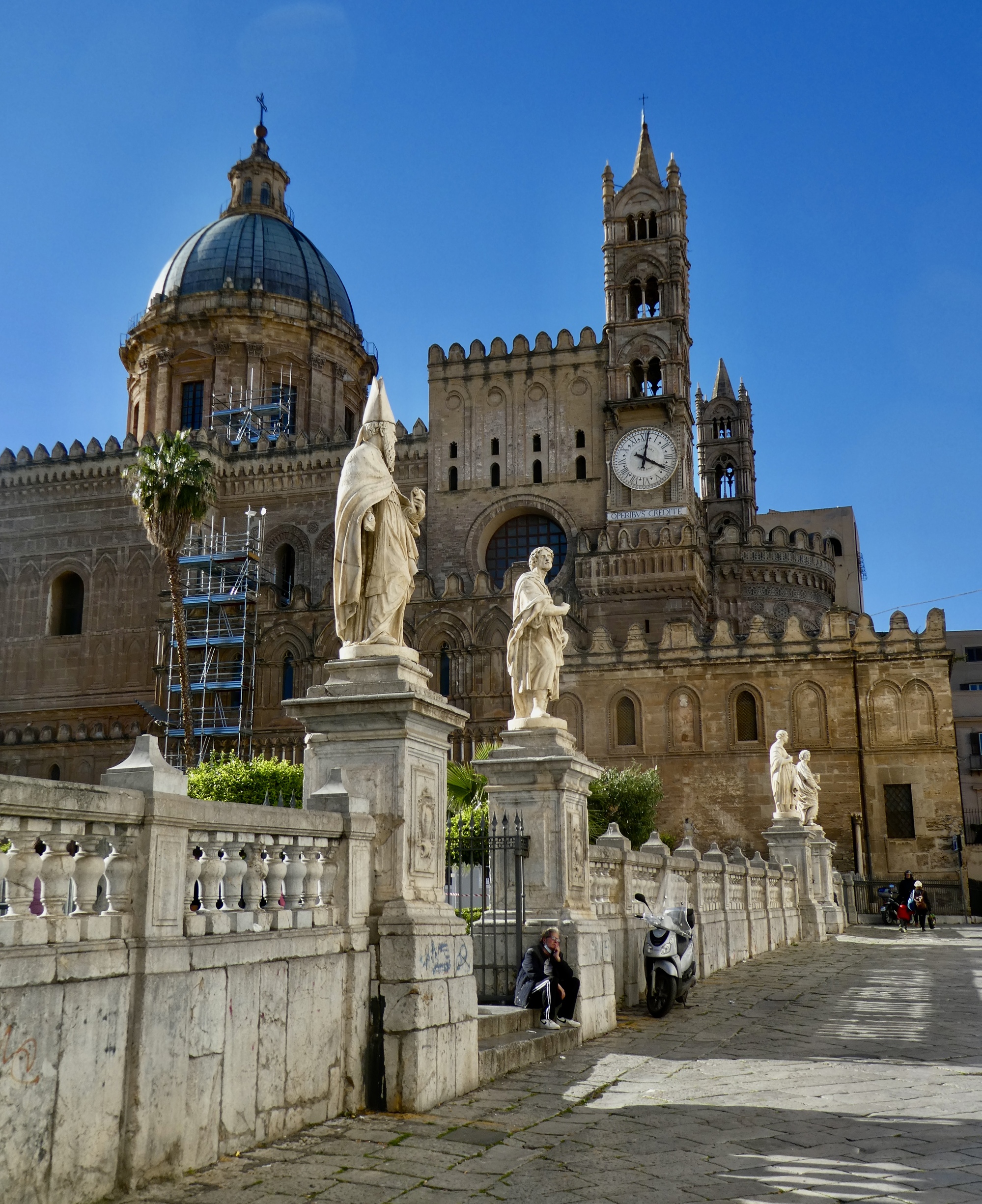 The Palermo Cathedral. We were excited to see the cathedral, Rachael’s top destination for today, but it’s a disappointment when we arrive because it’s unexpected. We’ve forgotten, and mixed it up with mosaic-rich Palatine Palace. We give a cursory look at the cathedral and then keep walking south.