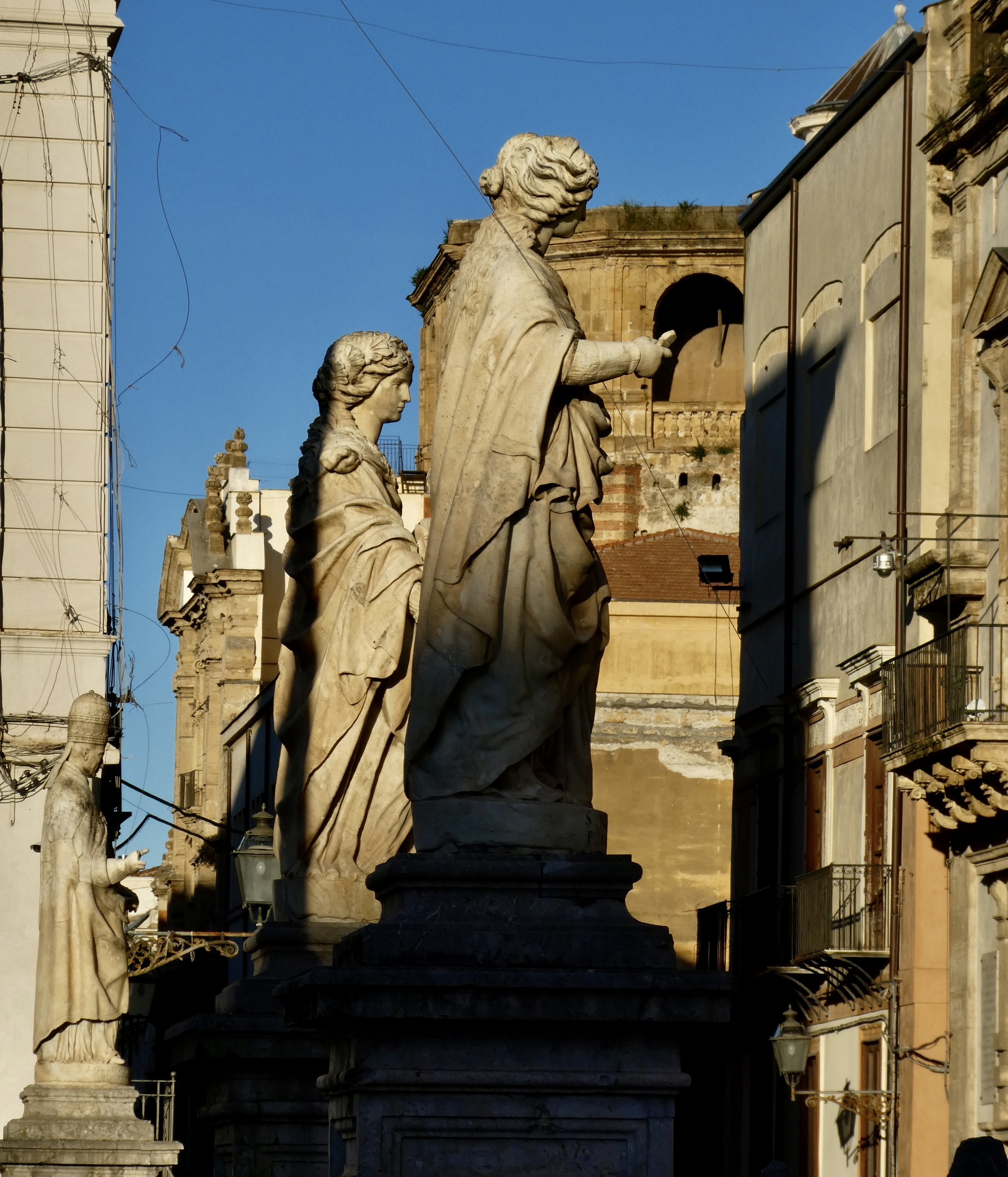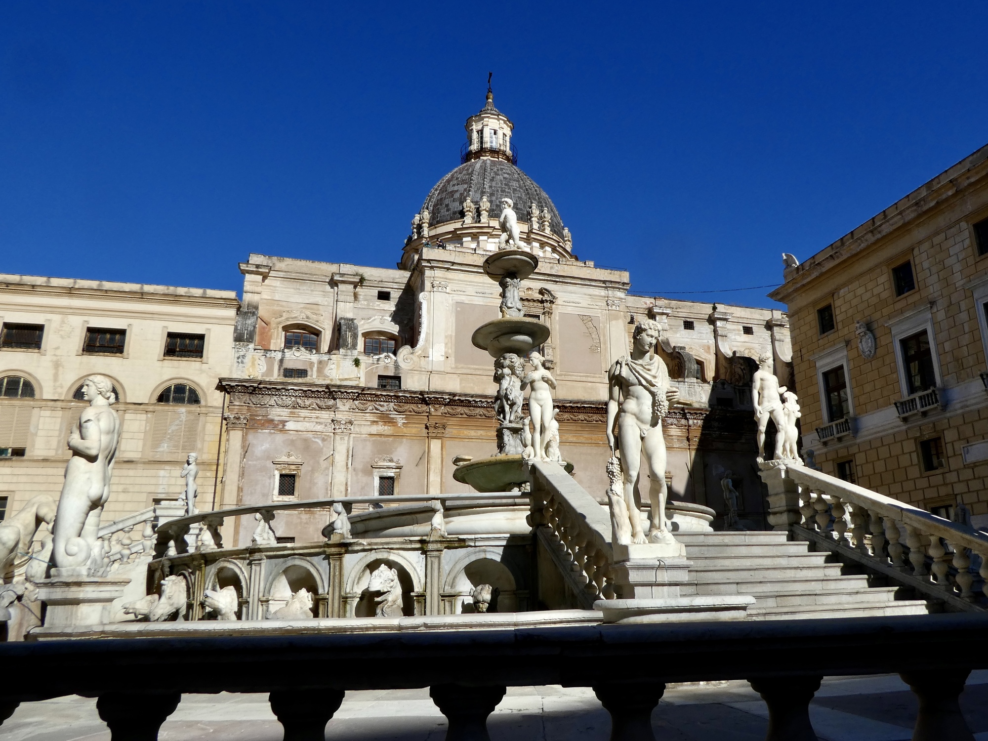 The Pretoria Fountain, with the dome of Santa Catarina in the background. I was surprised to learn that the fountain was built in 1544 in Florence, and moved to Palermo in 1574 when the owner fell deeply in debt and had to sell it.
