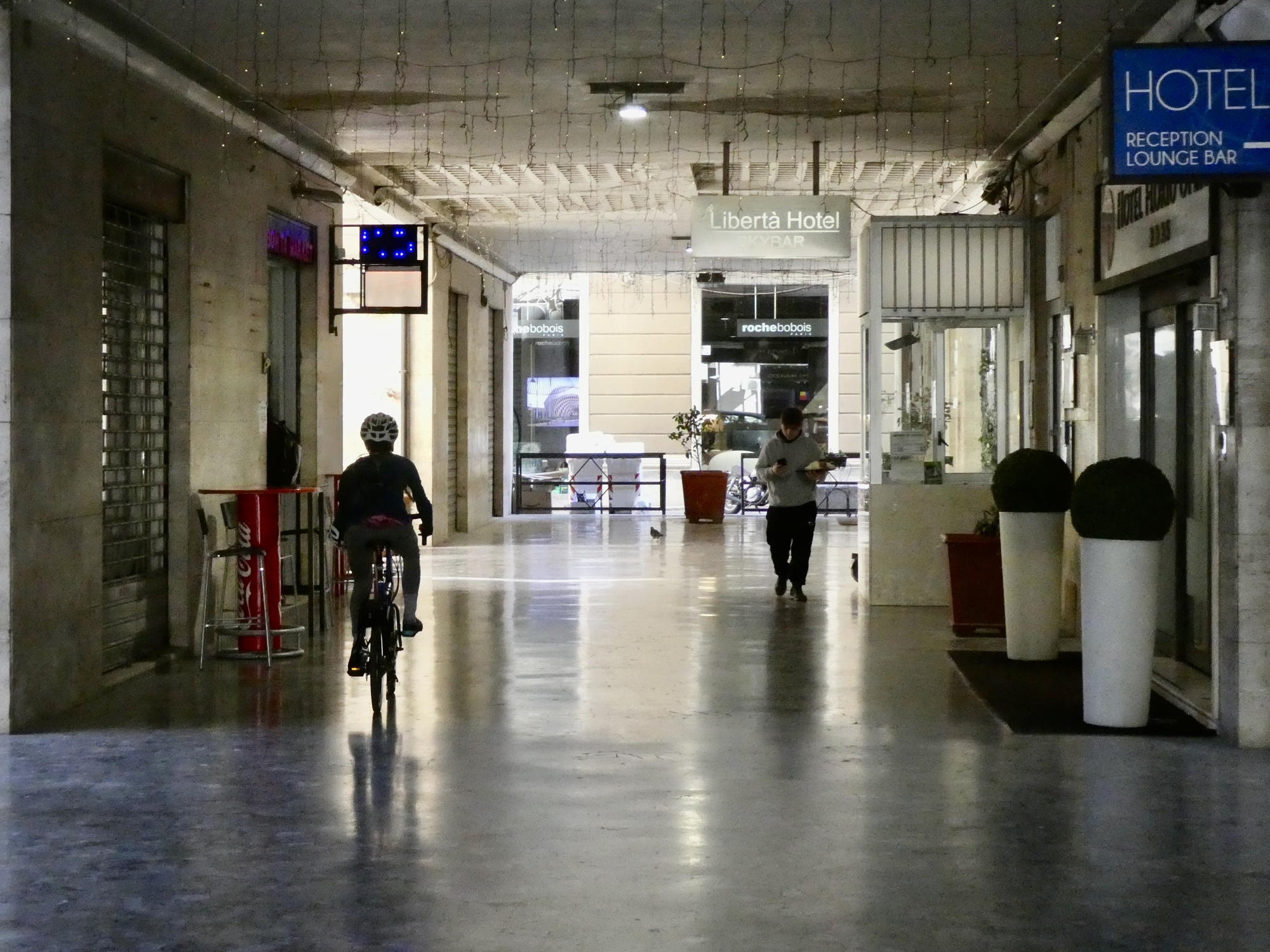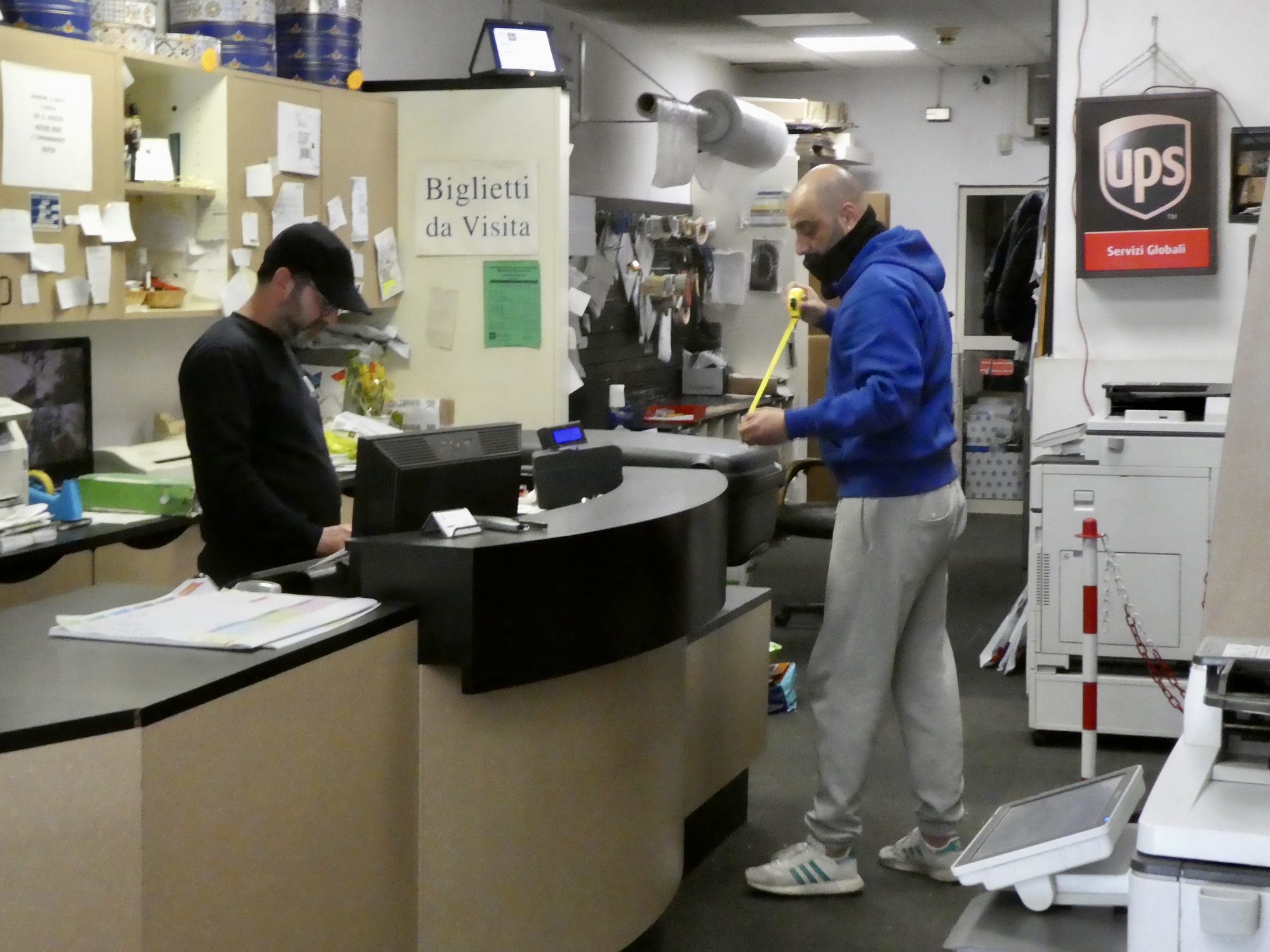 We head down to the UPS store right at two, just after they’ve reopened from their lunchtime break. It’s an easy walk - maybe three hundred yards, because this was one of the criteria we used in choosing this hotel. Everything goes perfectly at the store - they have no trouble with accepting them unwrapped, and after weighing and measuring them they quote us €60 for the pair to ship them to our final hotel in Bologna. A great deal, especially it they get delivered successfully this time.