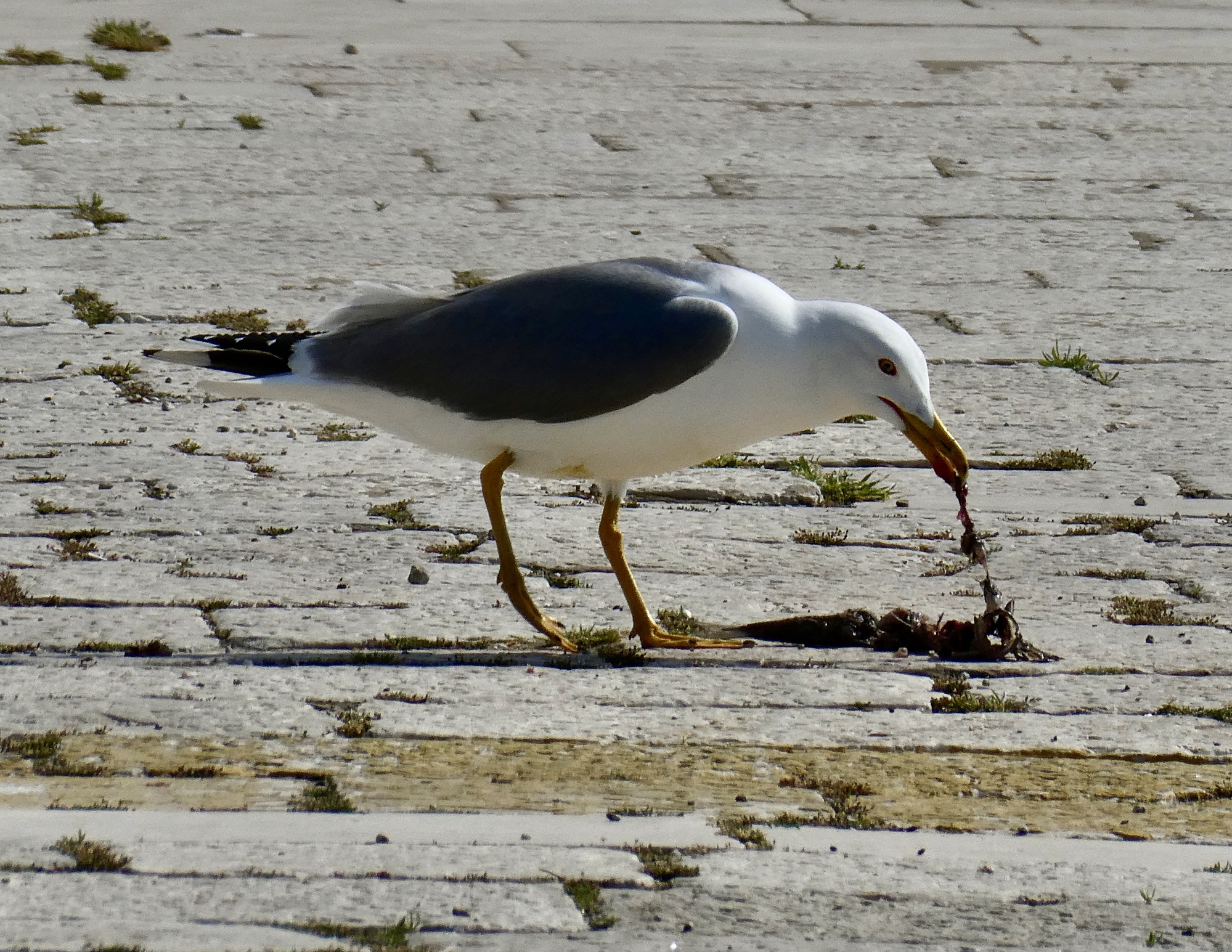 #123: Lesser black-backed gull. Similar to the yellow-legged gull (in photos below) but for the darker mantle, longer legs and slimmer beak. The fondness for trash is not a distinguishing characteristic.