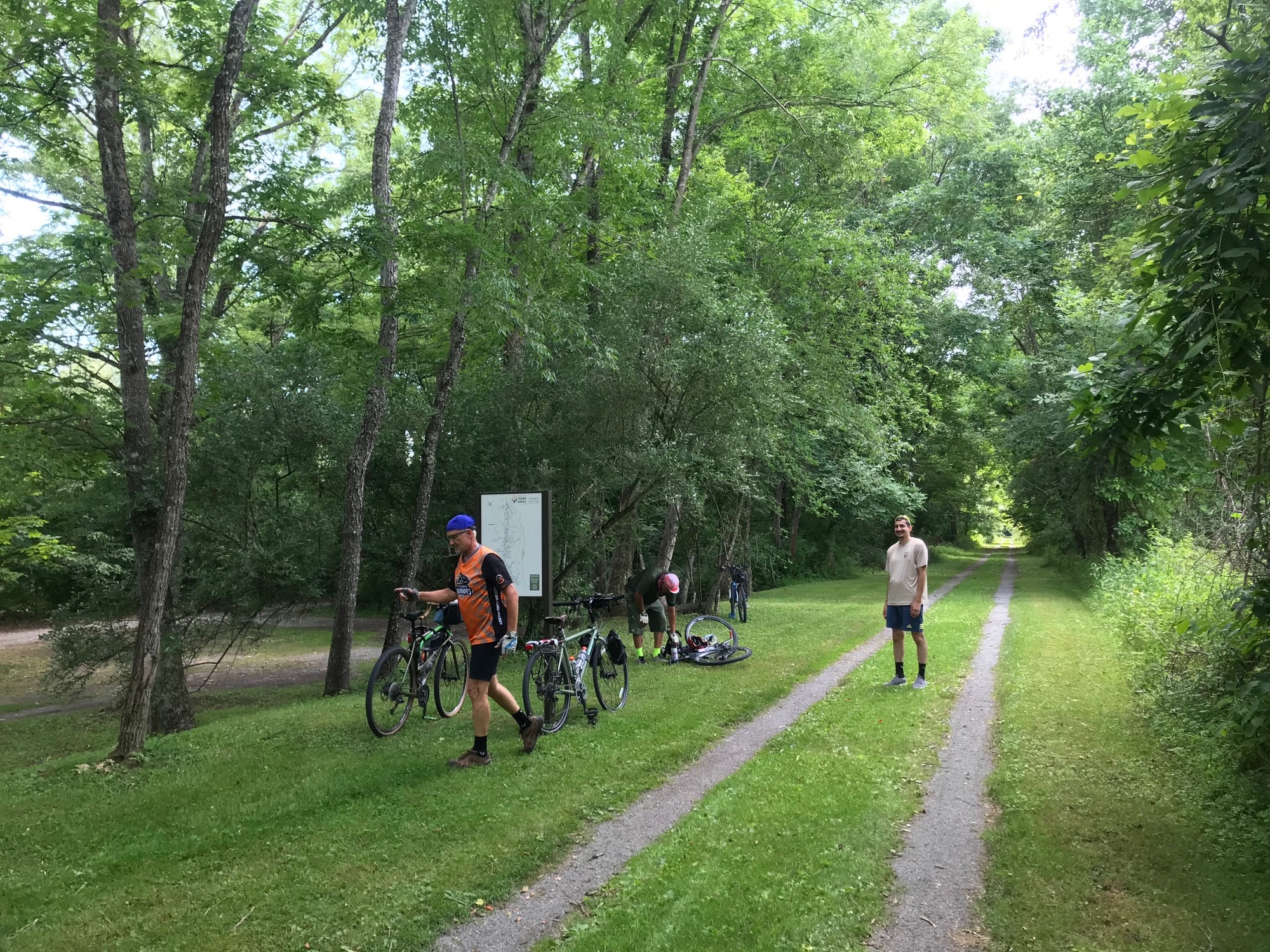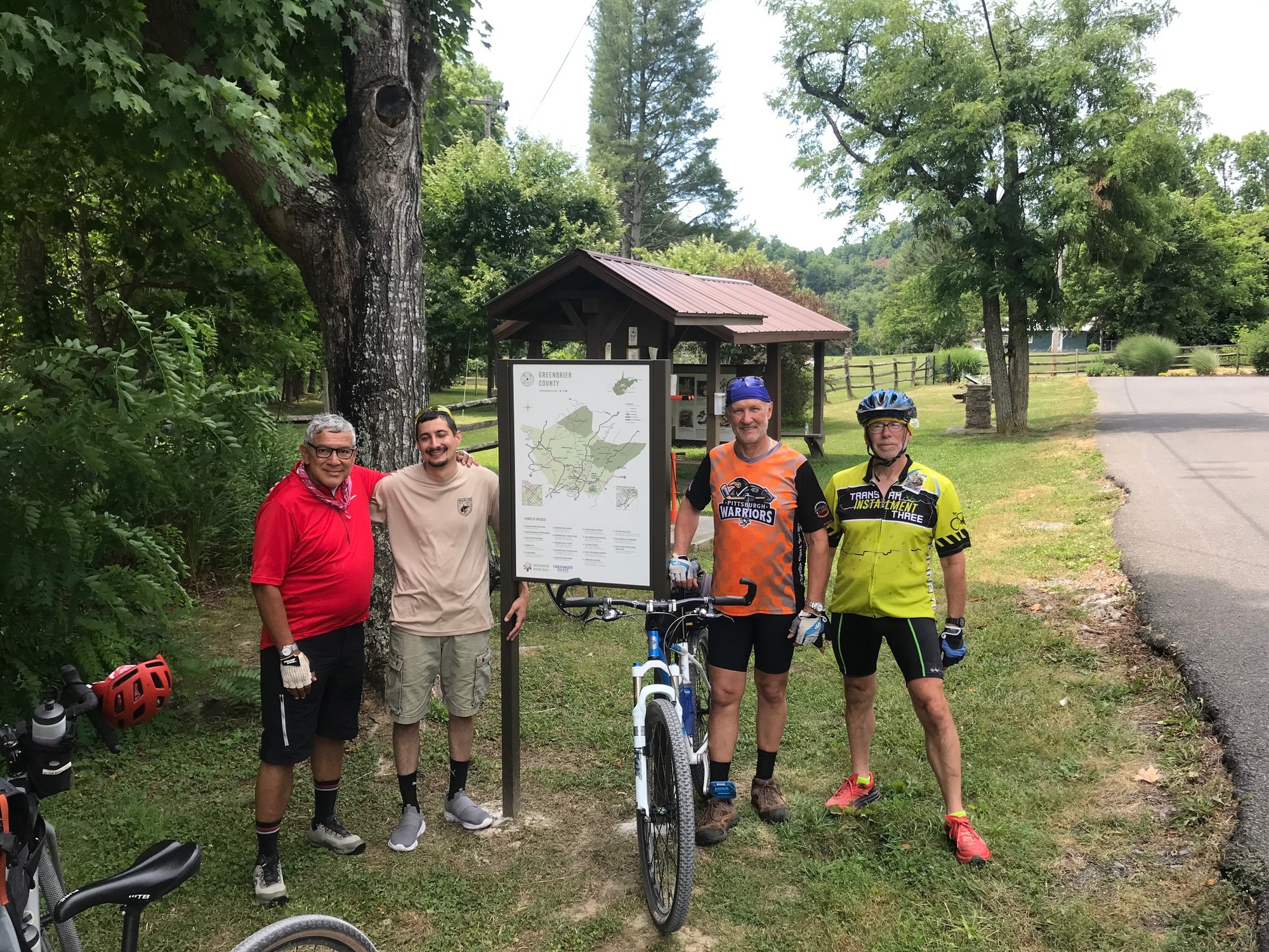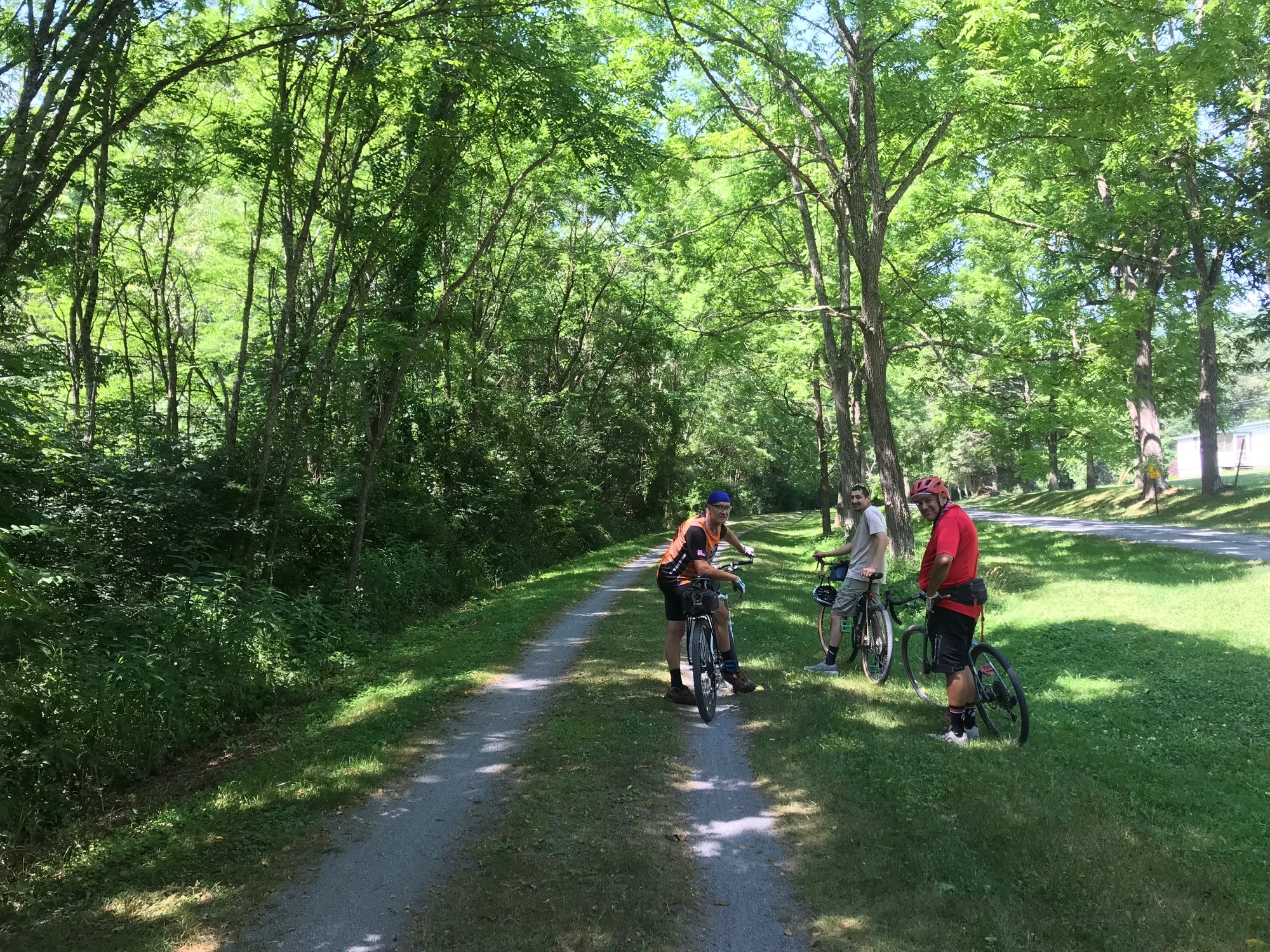The Greenbrier River Trail (GBT) is one of the premier trails in West Virginia. The well-maintained path runs roughly parallel to the Greenbrier River in Pocahontas and Greenbrier Counties. Its length is a bit under 80 miles, from Cass (Pocahontas) in the North to Caldwell (Greenbrier), at its Southern Terminus. If touring the Mountaineer State, this trail should not be missed. With that in mind, four (4) of us decided to ride it in late June. The riders were, Tim-G, Phillip-T, Phillip's son Anthony-T, and yours truly. I had ridden a portion of the GBT about 12 years ago but always wanted to come back and do the whole thing. The time is now!