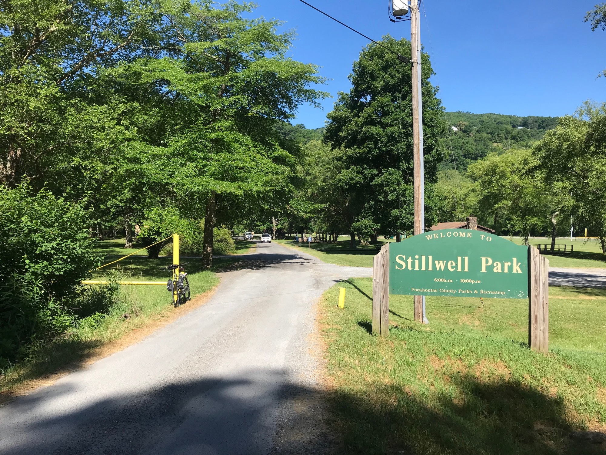 Eventually, we made it to Marlinton, where we looked around, dined at a local establishment, and stocked up on food before heading a couple of miles further down to Stillwell Park. There, at a large gazebo, we set up our camp for the evening. Since there was a clear sky and no ambient light, after nightfall we were treated to a tremendous array of stars.