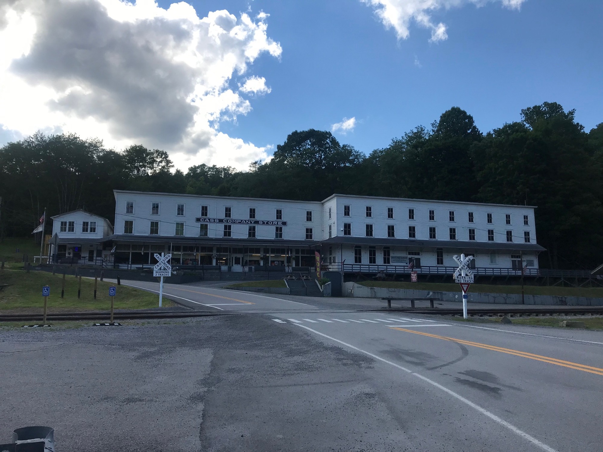 We met near the train depot building that dominates the town. The headquarters of the Cass Scenic Railroad excursion train is there. It takes tourists on a memorable ride through the mountains to the East. The trailhead lies immediately across a small bridge that is visible from the depot. Since we were there to ride the trail, after a brief visit to the company store and its restrooms, we headed across the river and to the trailhead to begin our journey.