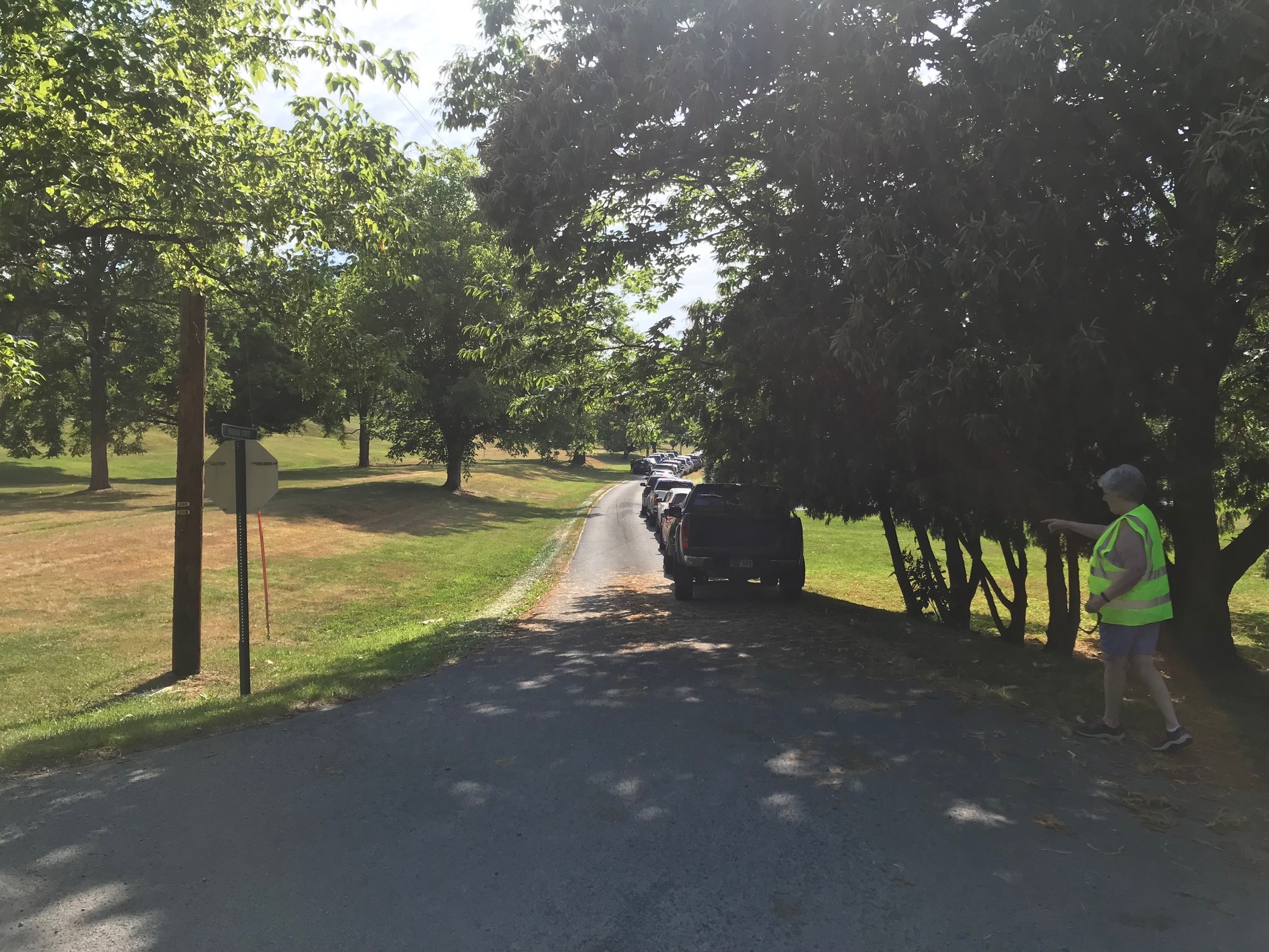 The nice lady who was directing vehicles lining up for the food distribution program at the park.