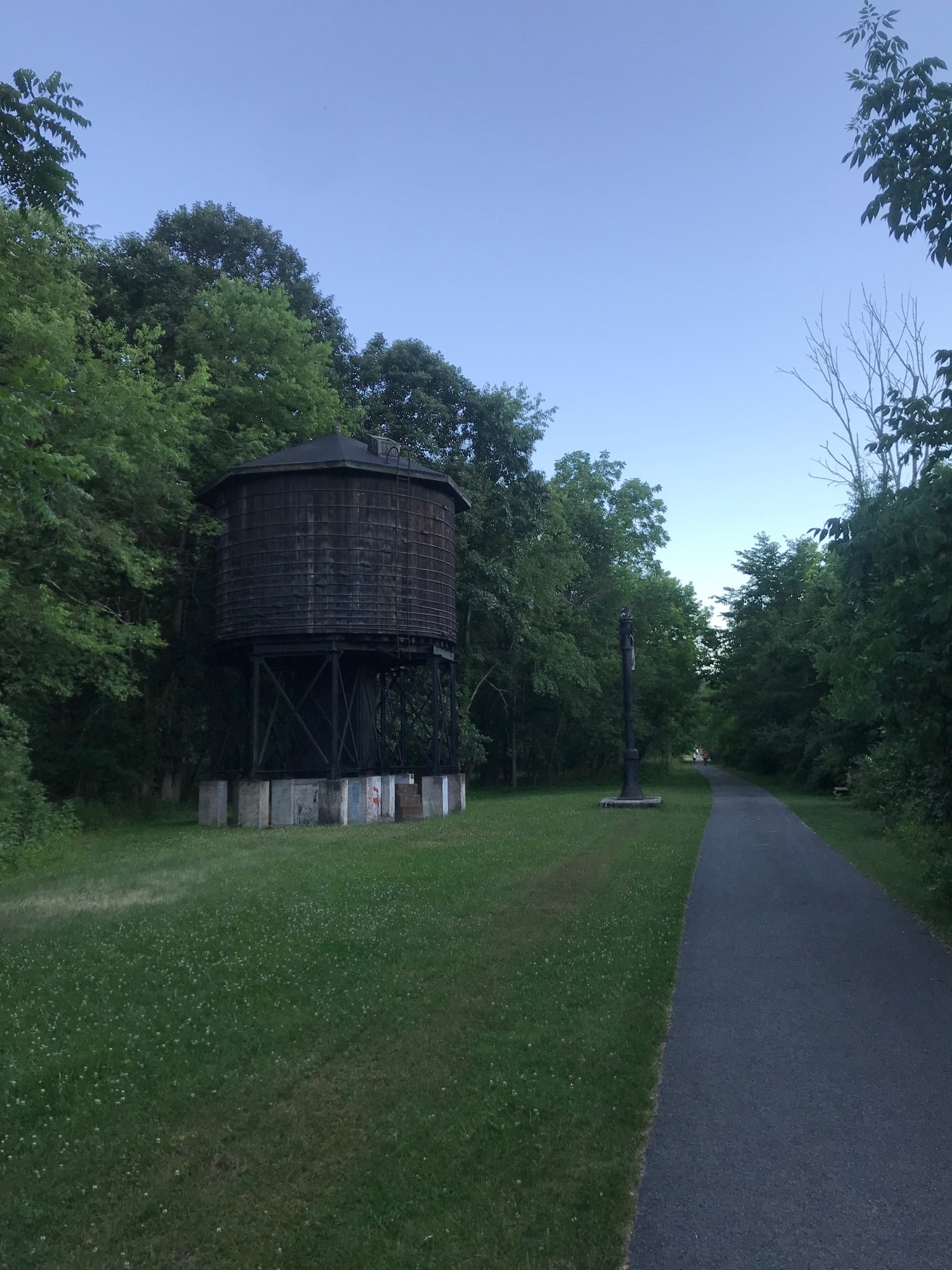 JHC had a restaurant, a gift shop, restrooms, and rentals of bicycles, and kayaks. We had a late lunch there and took a long break before moving on. Our goal was to get to Renick because it had a community park, with access to the river, where we would be allowed to camp. A highlight of the second half of the ride today was the Droop Mountain Tunnel (at milepost 31). This was the second tunnel we had seen on the trail, the first having been passed through at milepost 65. Inside most tunnels, the air temperature is considerably cooler than it is on the outside. For a humid day like today, that meant it felt great, like air conditioning.