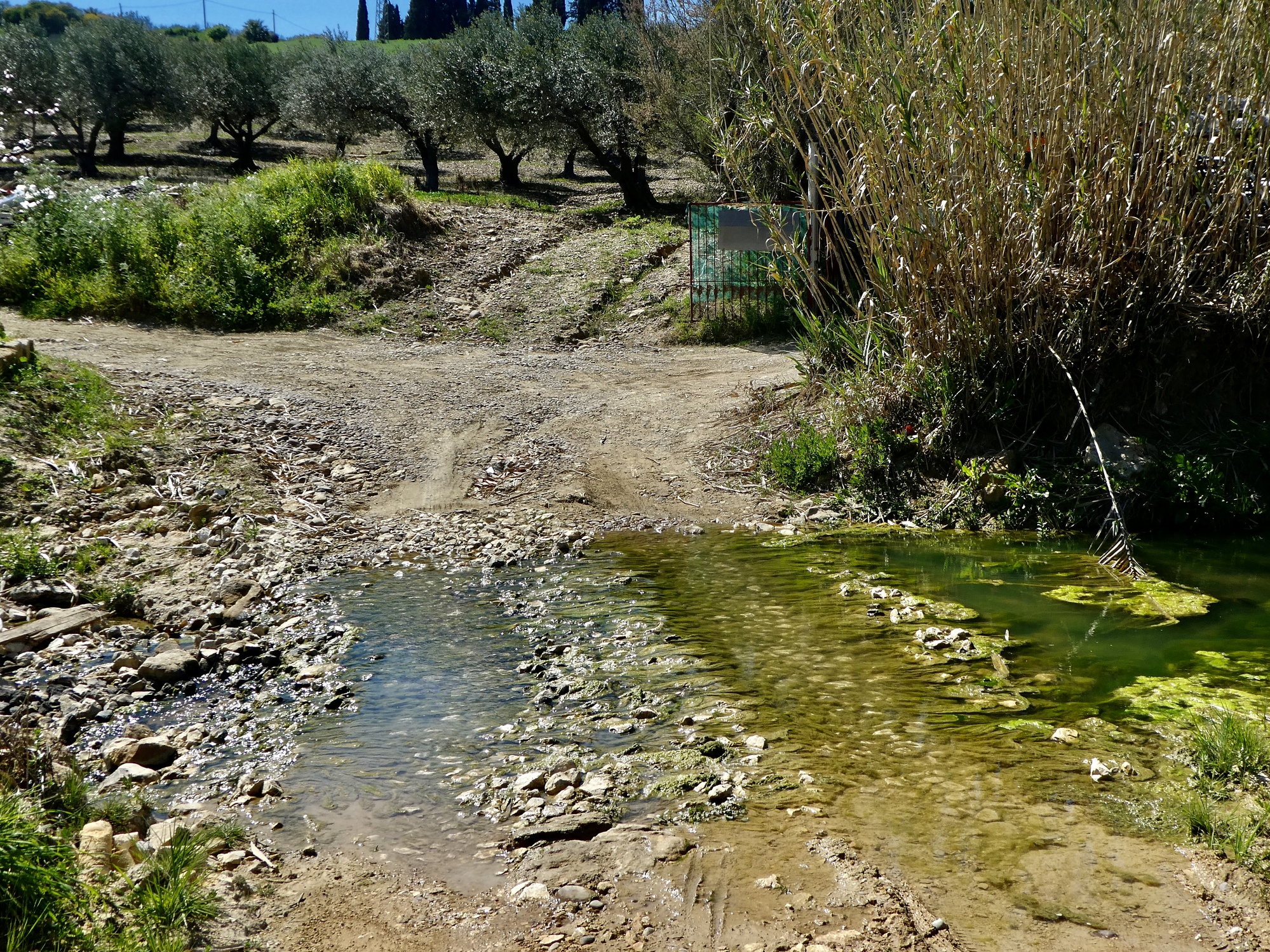 It’s a poor idea for a shortcut though. I turn off this lane to cross the shallow creek at what looks like the right spot but isn’t. After carefully tiptoeing across the slimy rocks I find it’s a dead end and tiptoe back.