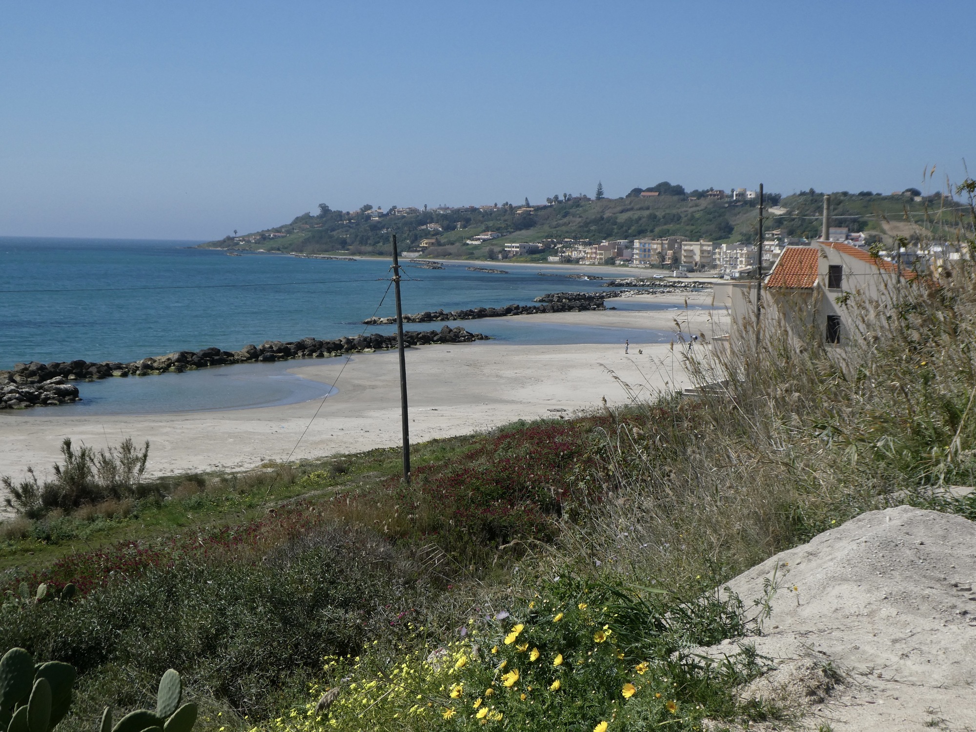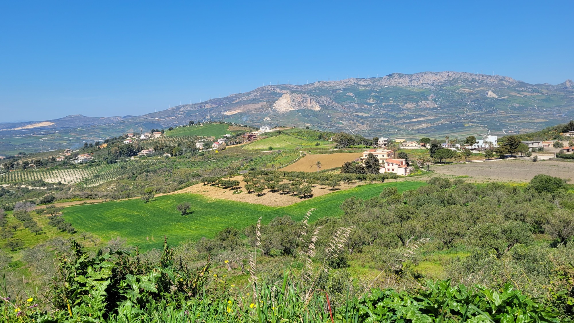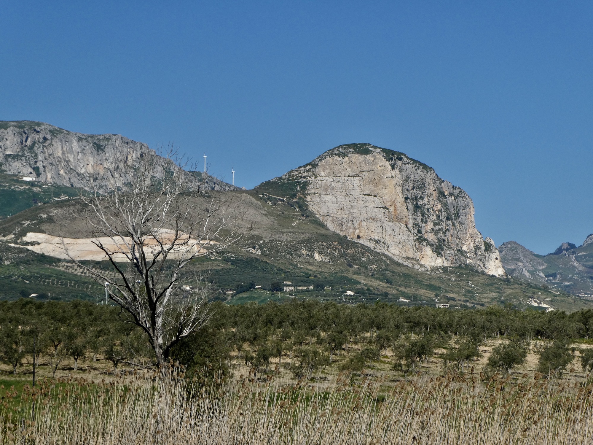 The next five miles are an easy, gradual climb over the littoral ridge. From the top I enjoy a swooping descent into the broad basin Rachael and I crossed yesterday going the other direction. I’m cutting northwest across it, and for about a half mile I cross and briefly follow yesterday’s route before climbing out the other side angling north toward Menfi.