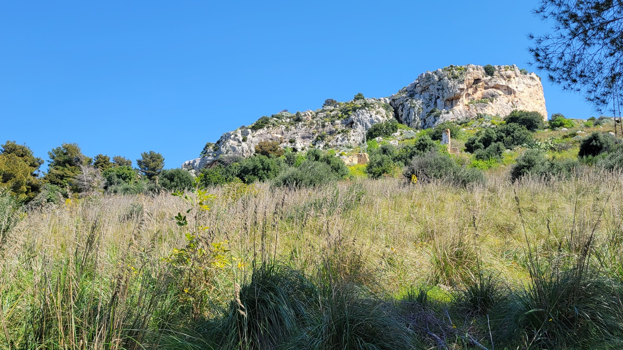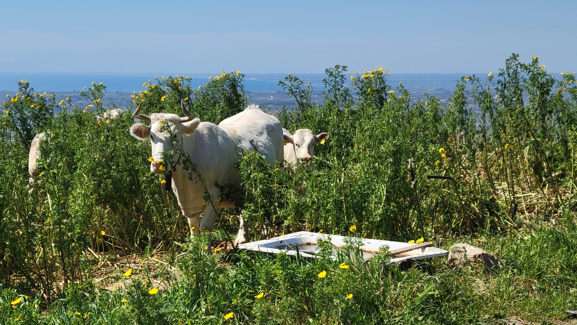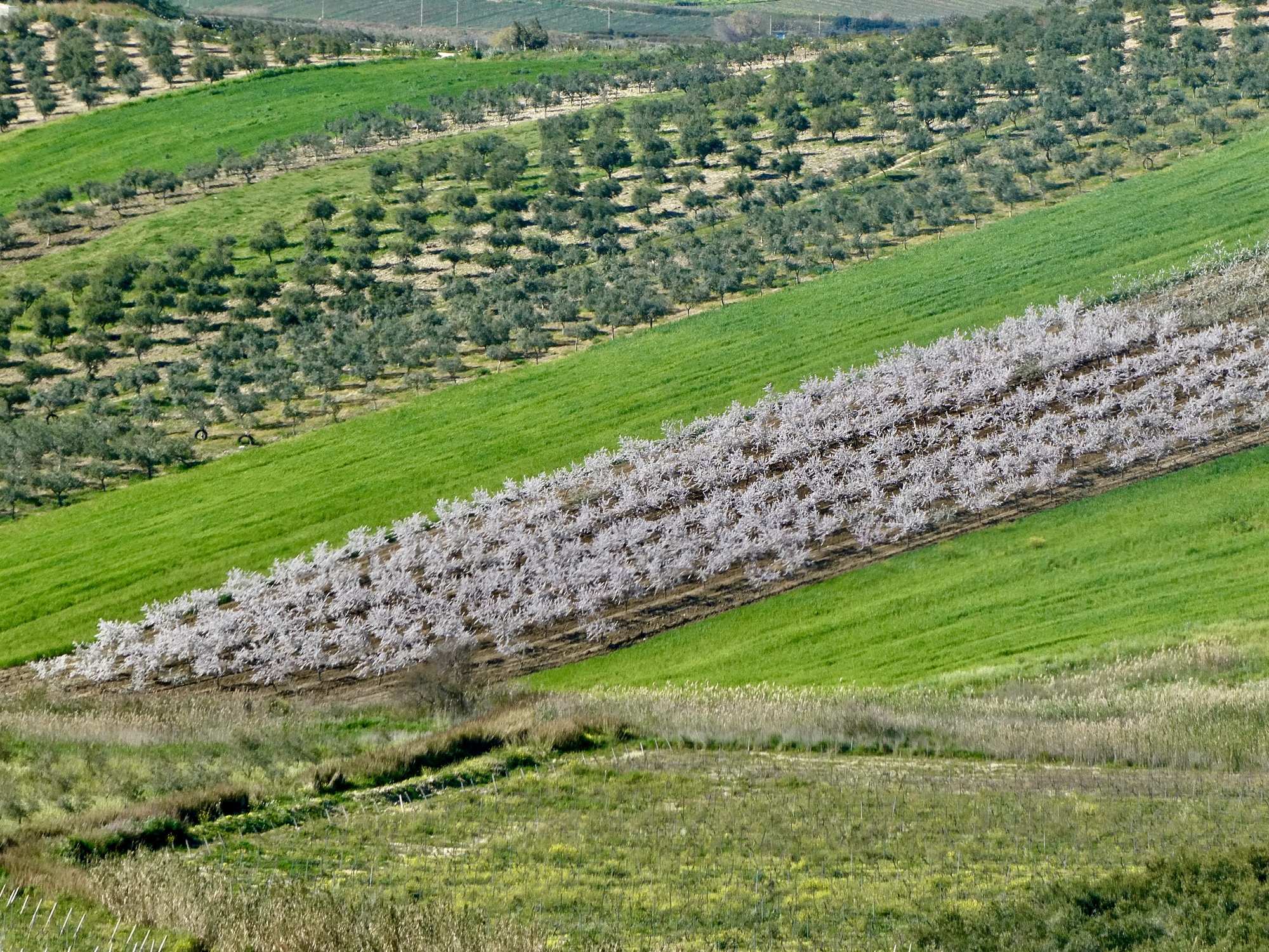The next five miles are an easy, gradual climb over the littoral ridge. From the top I enjoy a swooping descent into the broad basin Rachael and I crossed yesterday going the other direction. I’m cutting northwest across it, and for about a half mile I cross and briefly follow yesterday’s route before climbing out the other side angling north toward Menfi.