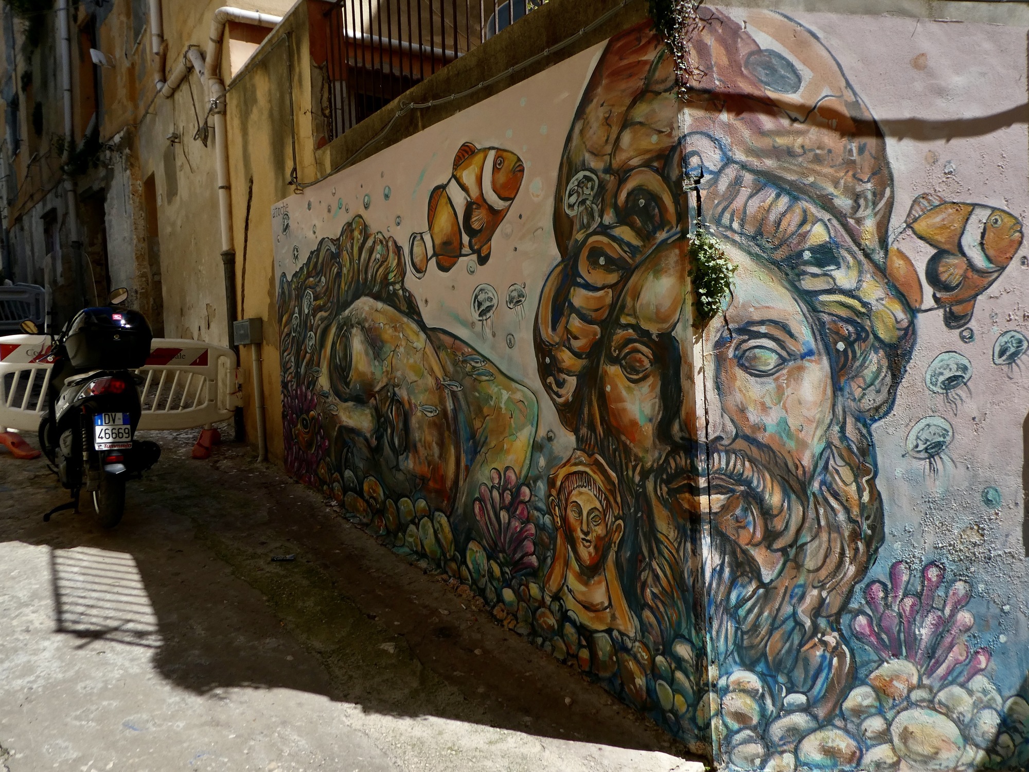 As long as we’re paused here anyway, it’s as good a spot as any to place a few photos of the wall art hidden in unlikely spots up these alleys.