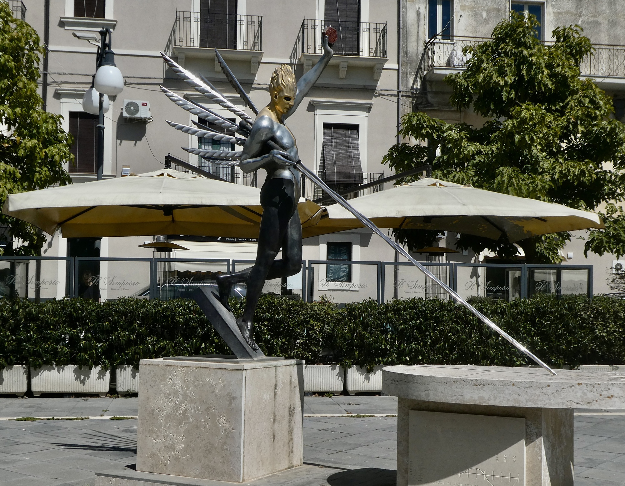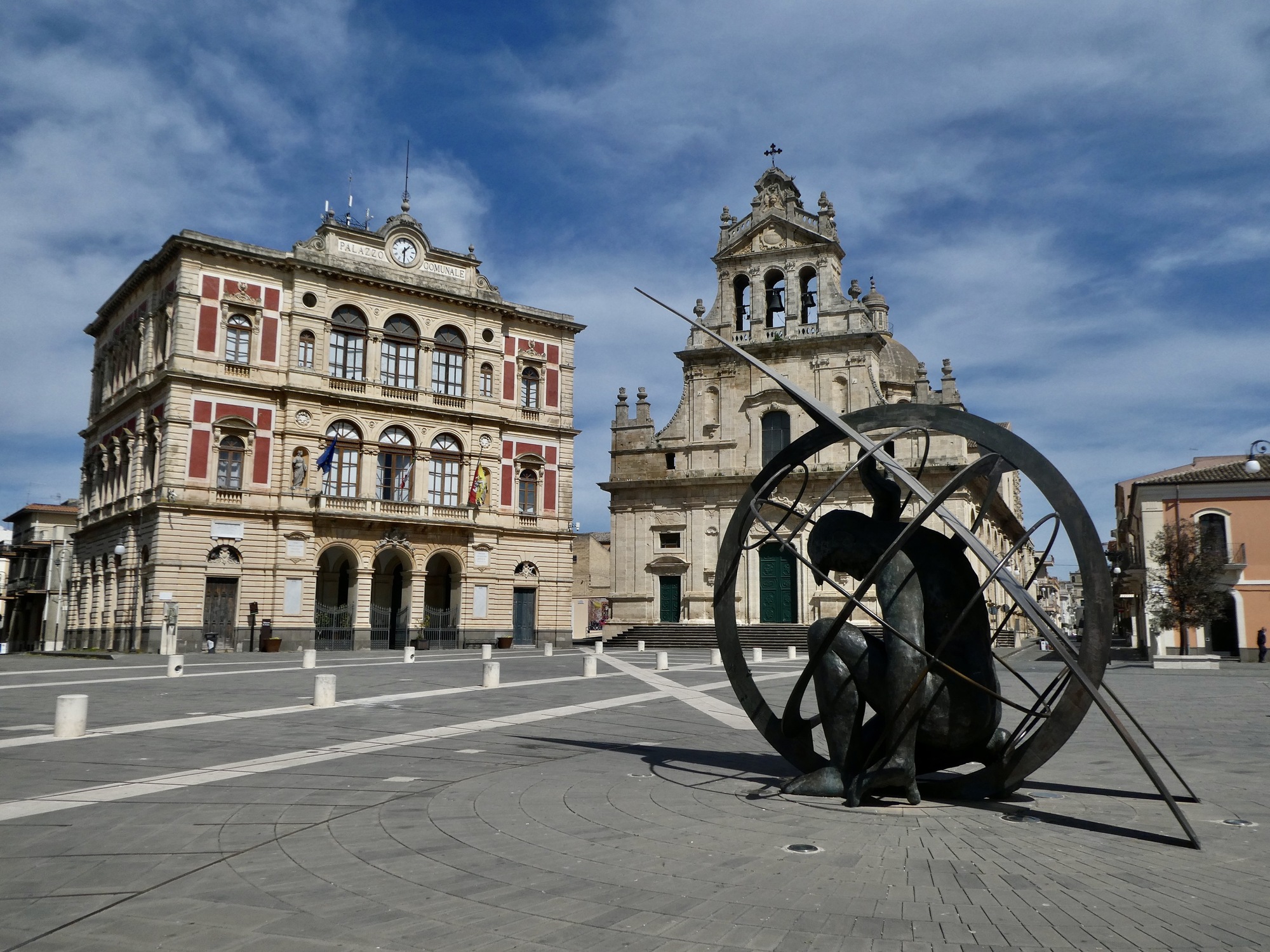 Construction of the new town was commissioned by the feudal landlord, Carlo Maria Carafa Branciforte. A man of science and letters, he is honored by the central plaza named after him and I assume by the artworks in rhe square and nearby.