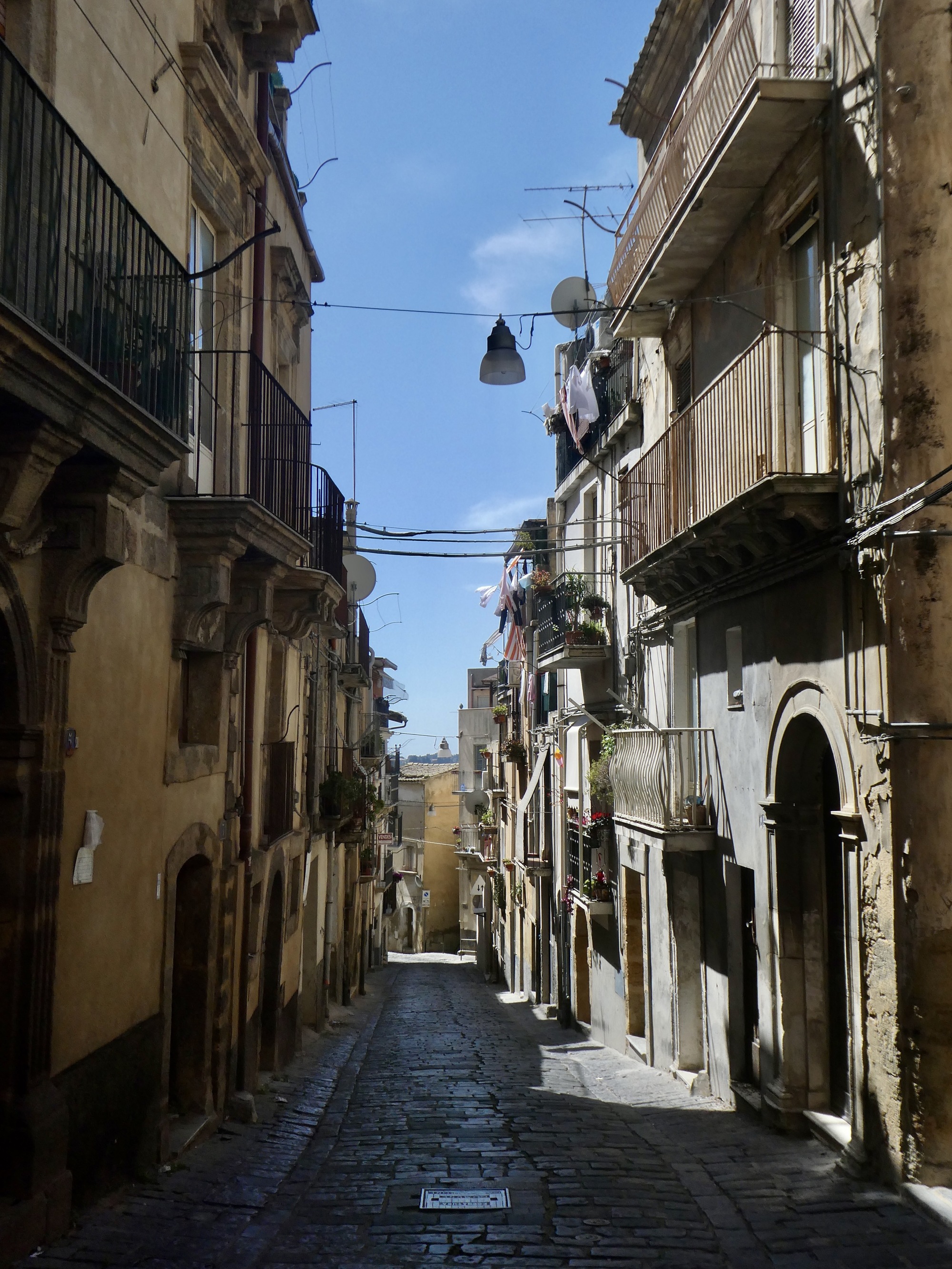 We fell down though on the planning side when we decided to stay in Caltagirone for three nights. I envisioned it as a good inland base for a pair of day rides; but if I’d bothered to consult the posts from our previous two visits I’d have been reminded that it’s another of Sicily’s very difficult cities to navigate by bike - or on foot for that matter, because many of the streets are very narrow and have only a token sidewalk about a foot wide to shelter you from oncoming traffic. It’s especially unnerving after dark, when we find ourselves squeezed into doorways and inhaling time and again to evade the protruding mirror of the next passing car.