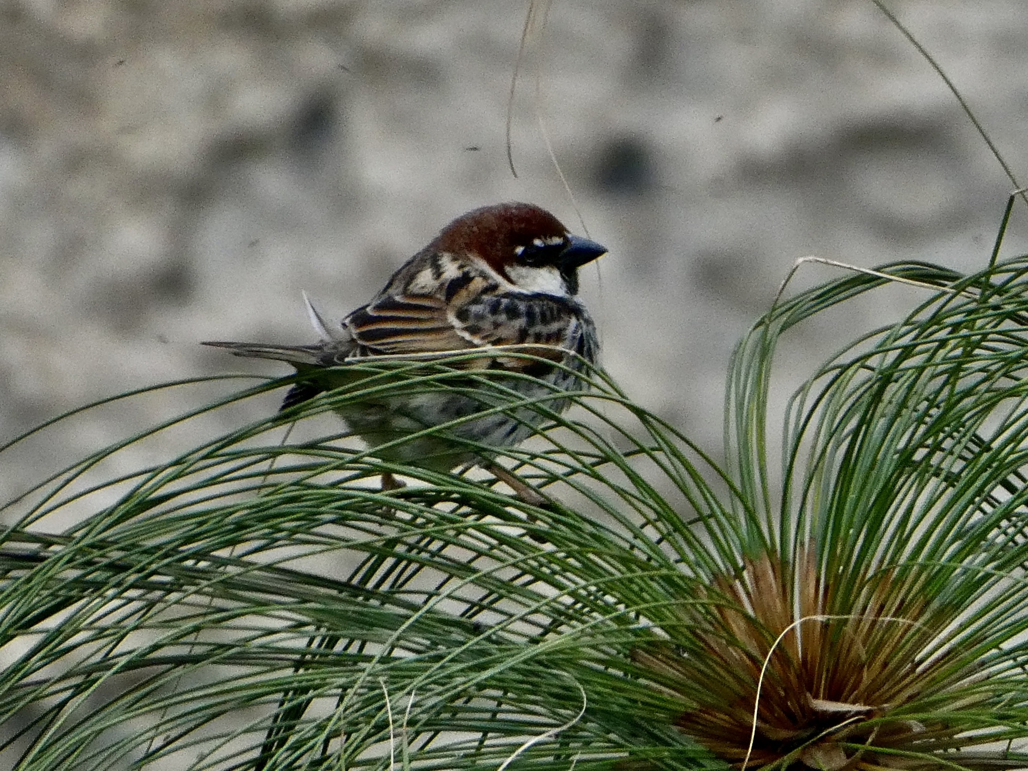 #135: Spanish sparrow, another close cousin of the English and Italian sparrows. It’s perched on the papyrus at the Fountain of Arethusa. Here and at two other nearby locations in Sicily are the only naturally occurring places papyrus is found in Europe.