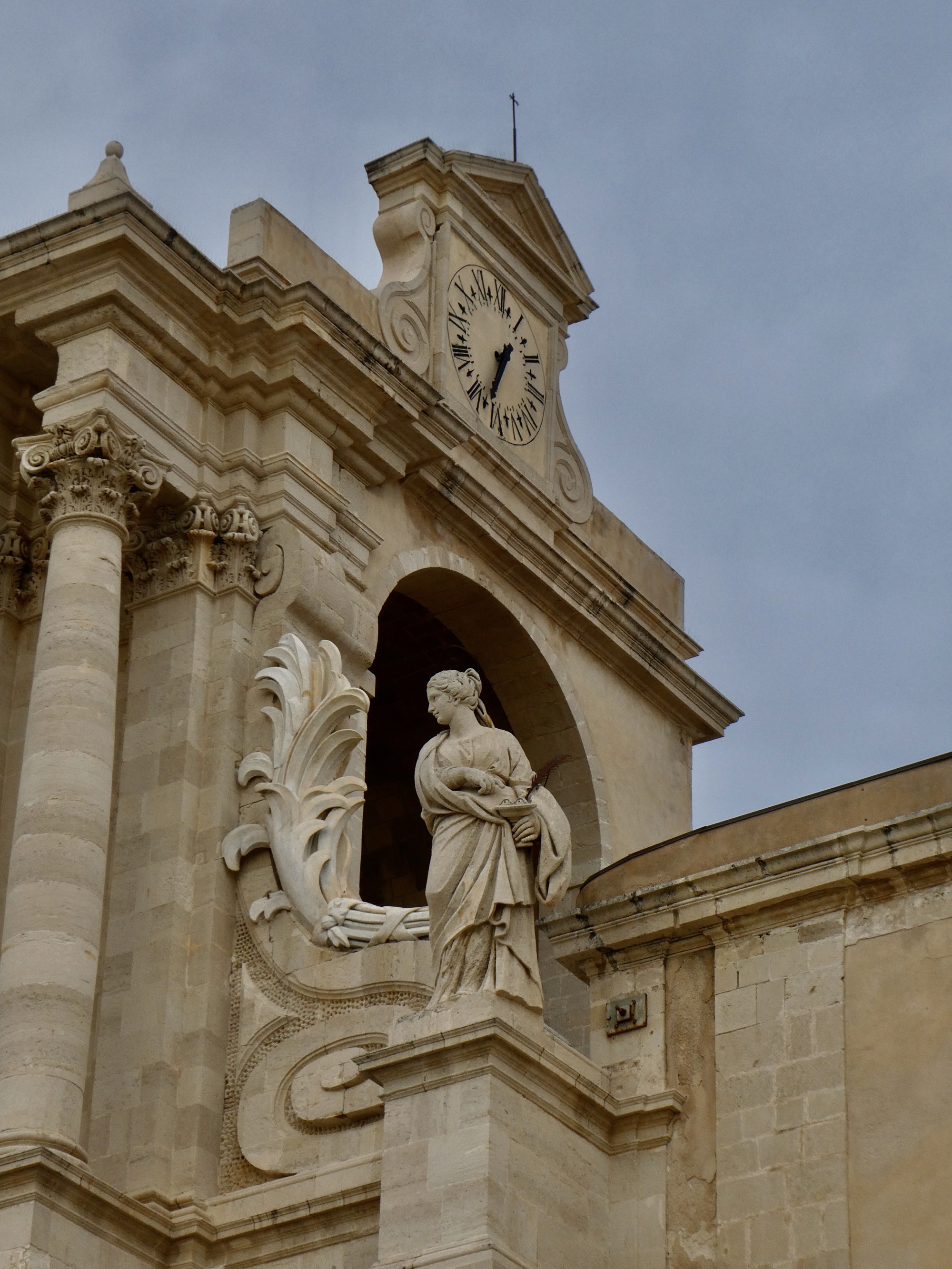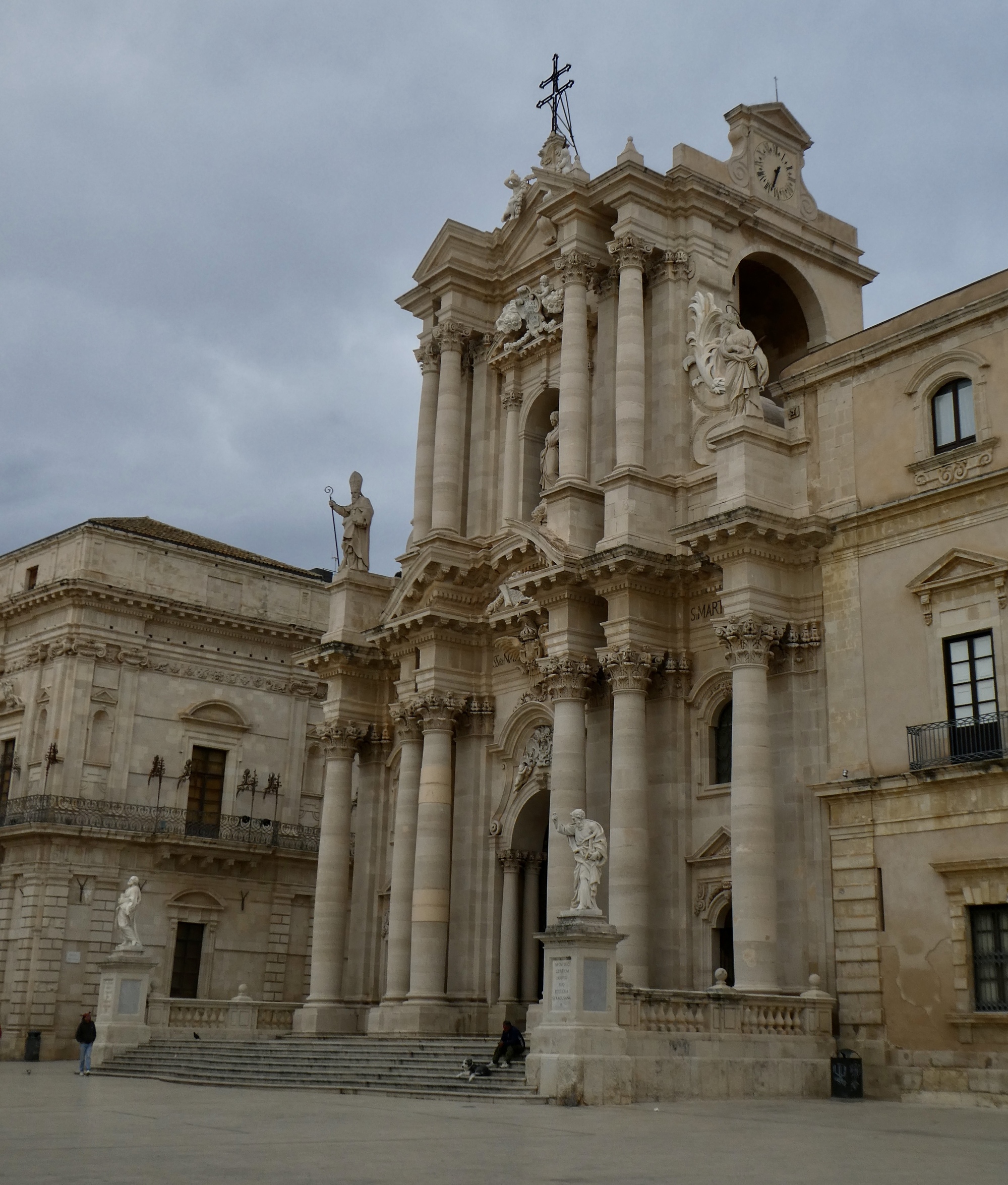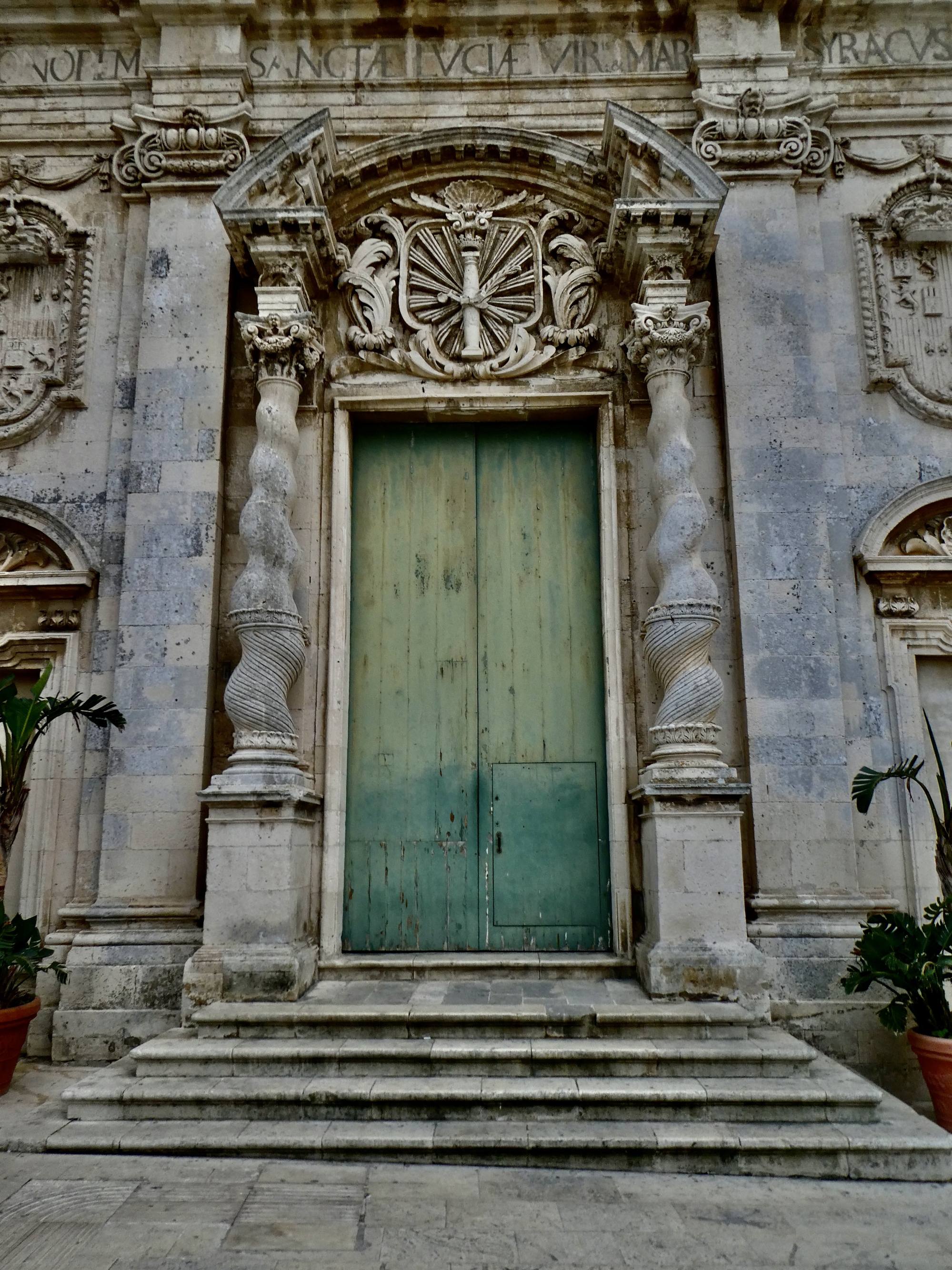 The baroque facade of the Duomo, the Siracusa cathedral. Closed for the day, but we hadn’t expected to get in. We’re just happy to see its exterior again and refresh our memories.