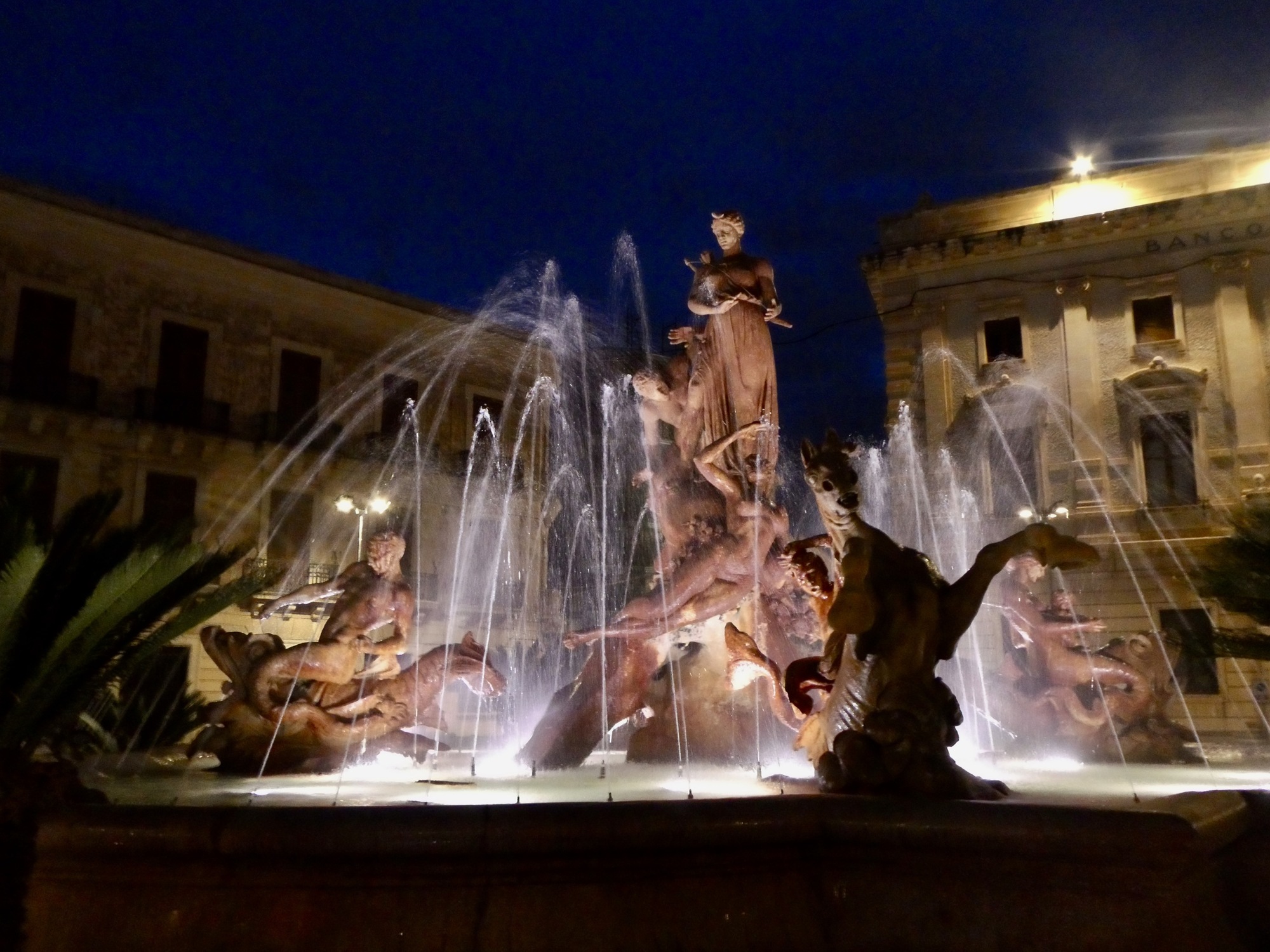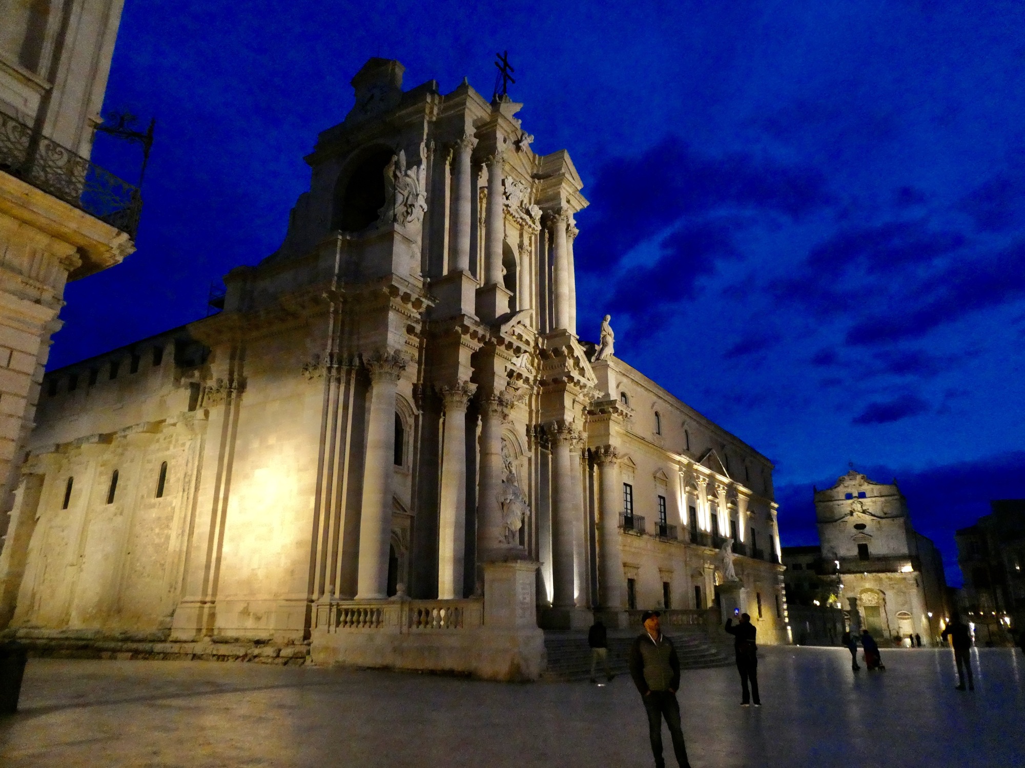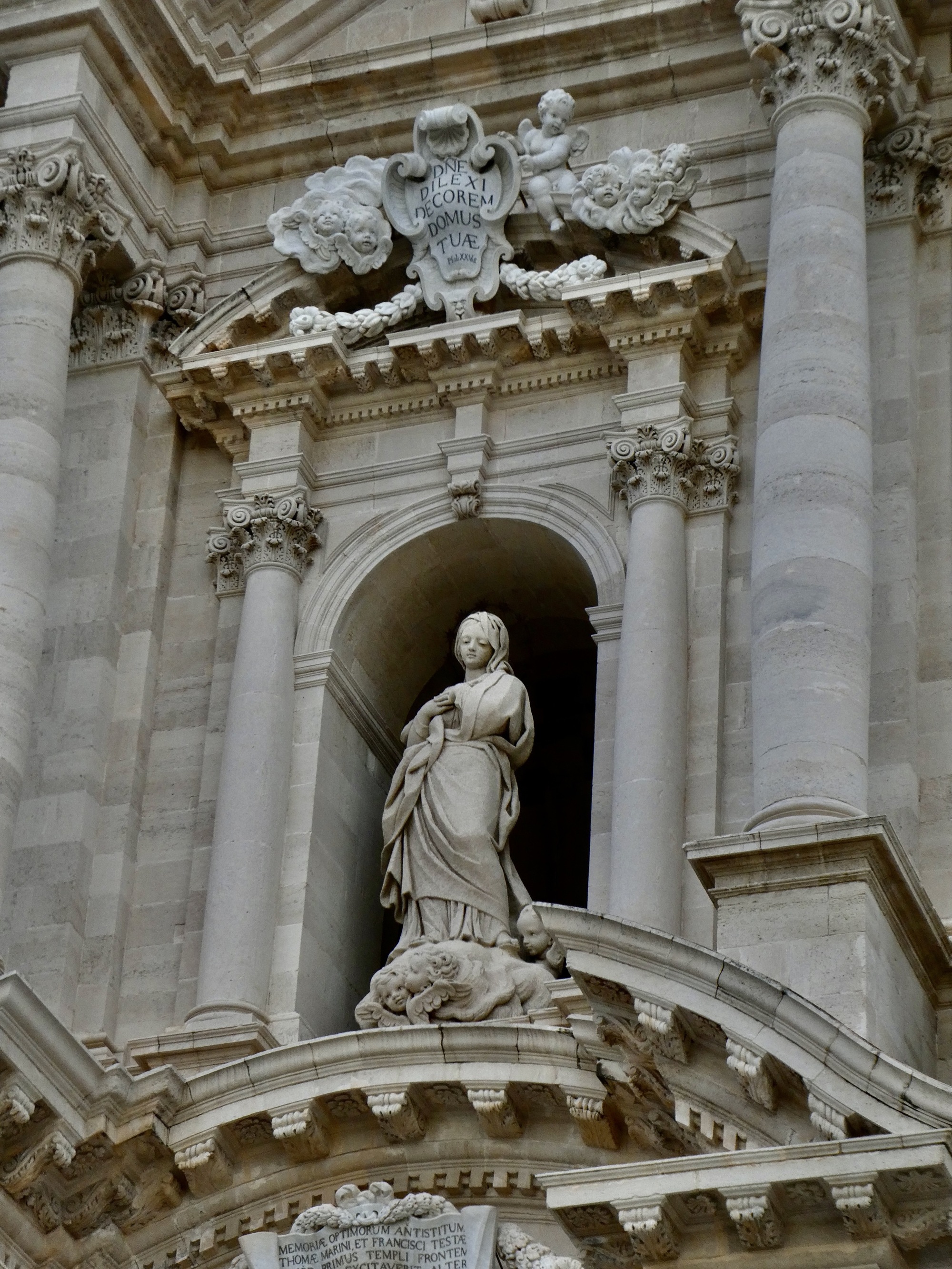 The baroque facade of the Duomo, the Siracusa cathedral. Closed for the day, but we hadn’t expected to get in. We’re just happy to see its exterior again and refresh our memories.