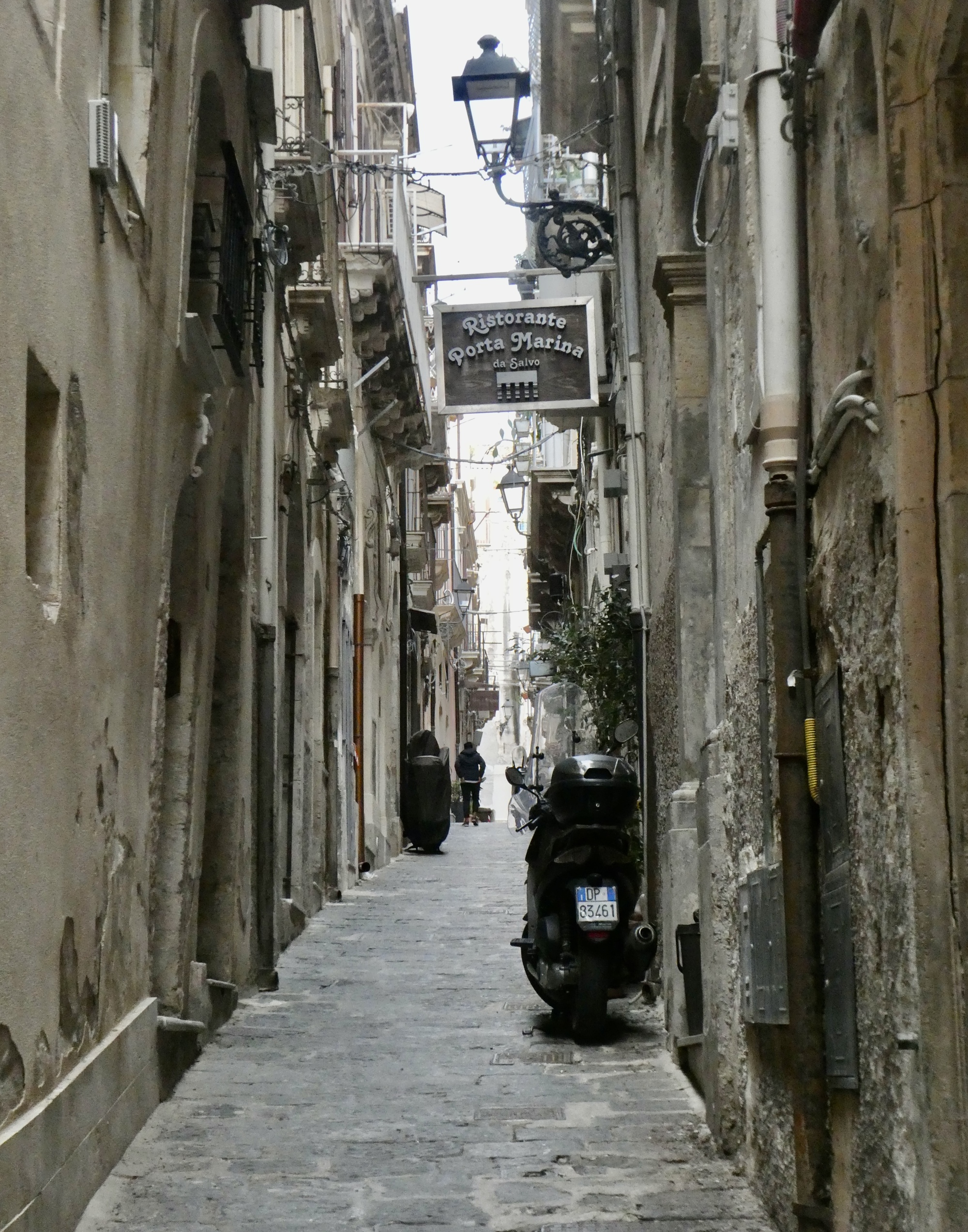 We landed in Siracusa by happenstance, only because it worked out for the train connections (but just barely, as it happened). Our original plan was to catch a train from Ragusa to Catania because that train journey looked simpler, but we couldn’t convince ourselves that we could get bikes on that train. We weren’t sure about the train to Siracusa either for that matter, but at least if we were rebuffed the taxi ride would be considerably shorter and less expensive.