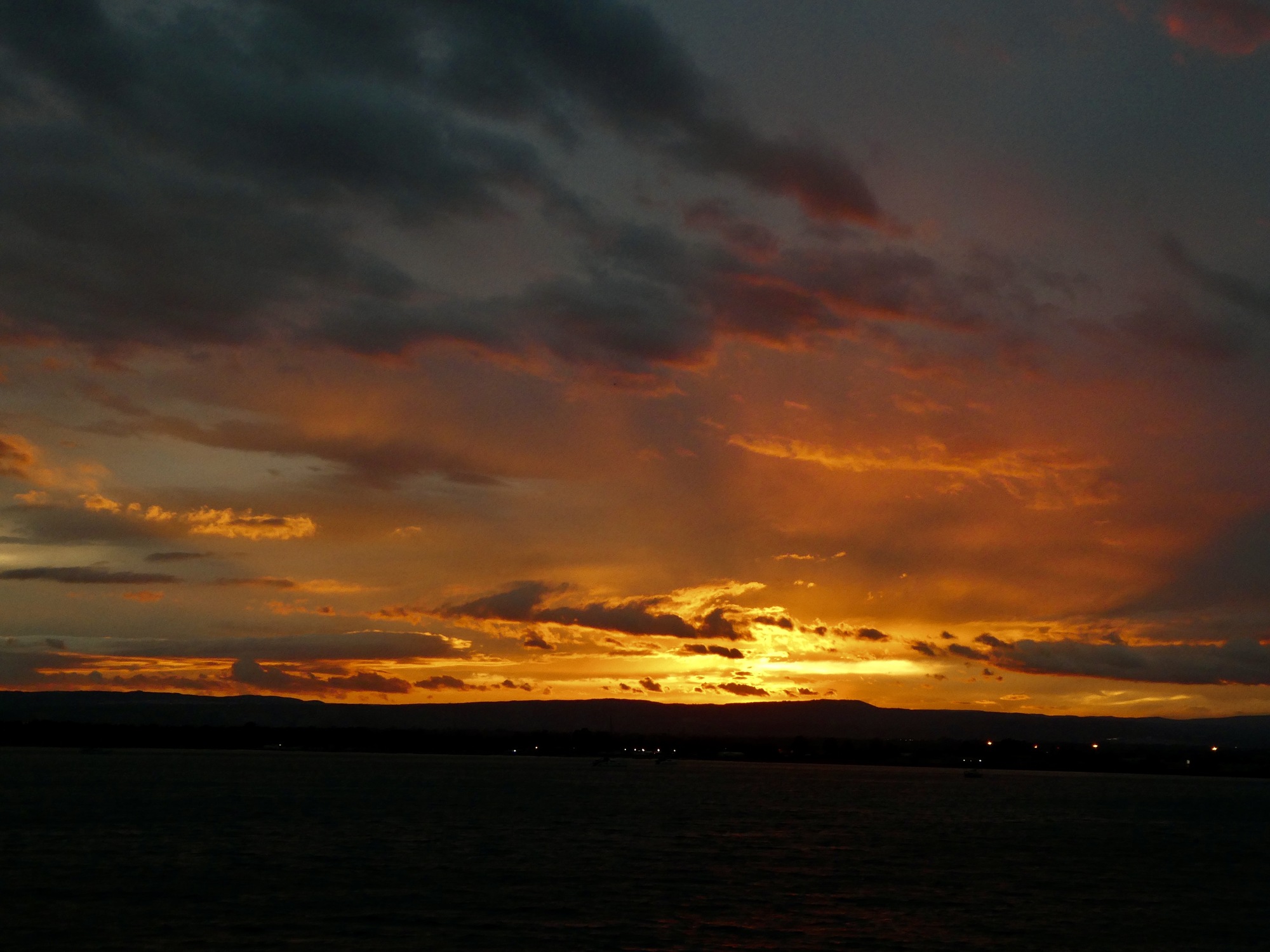 We had dinner at a waterfront restaurant on the west side. We watched a modest sunset slowly develop, looking like it wouldn’t amount to much of any thing until it suddenly and briefly caught fire.