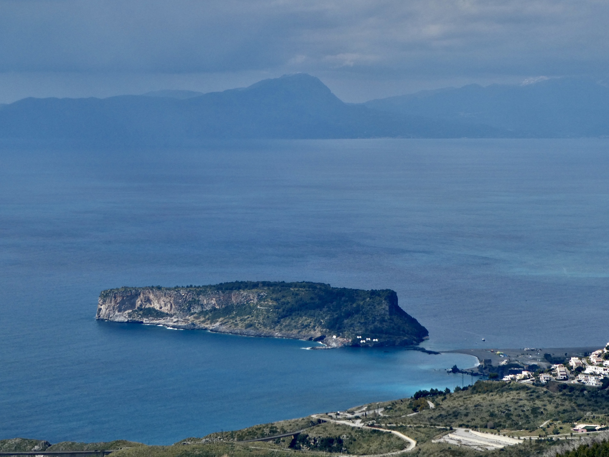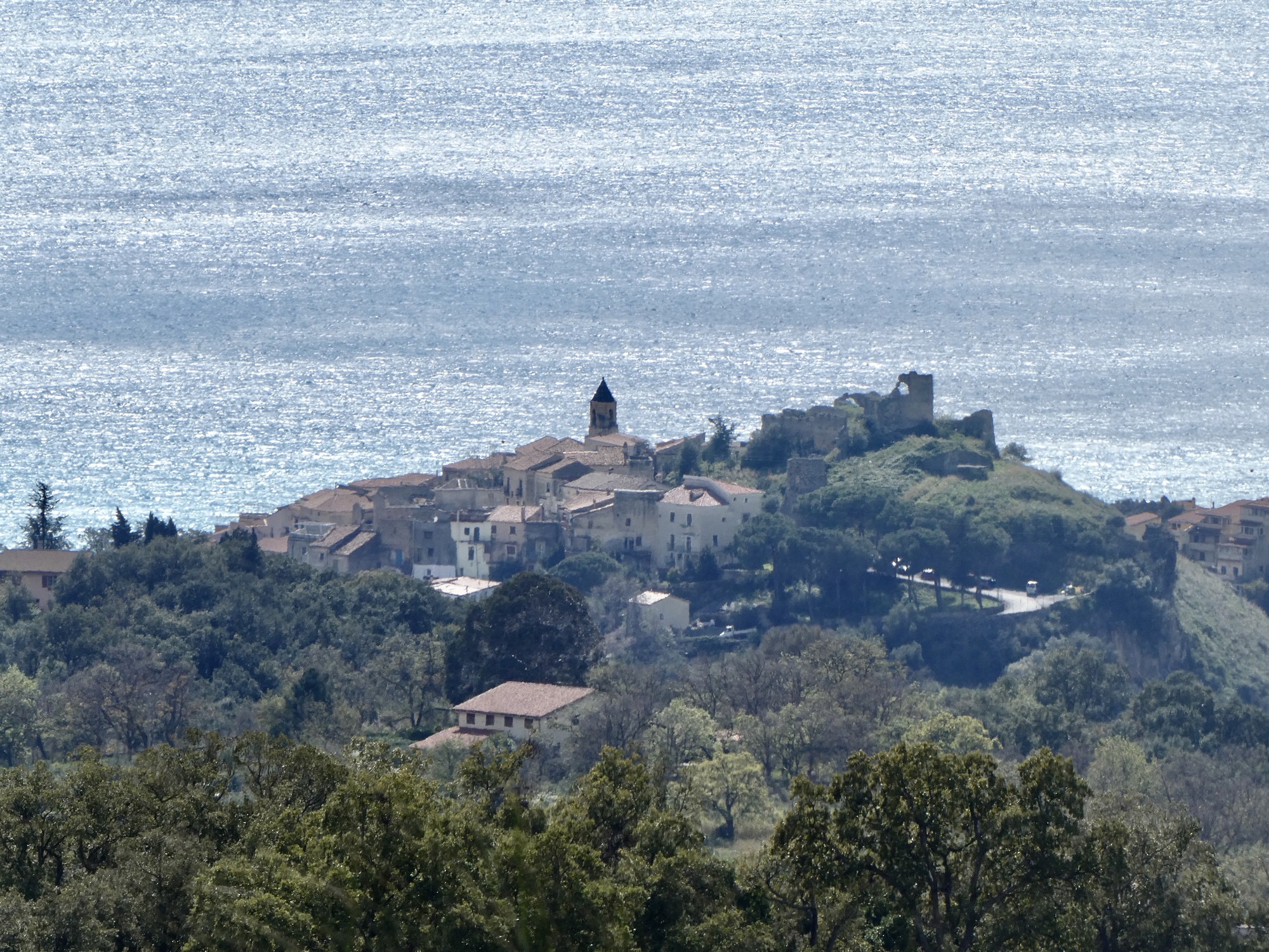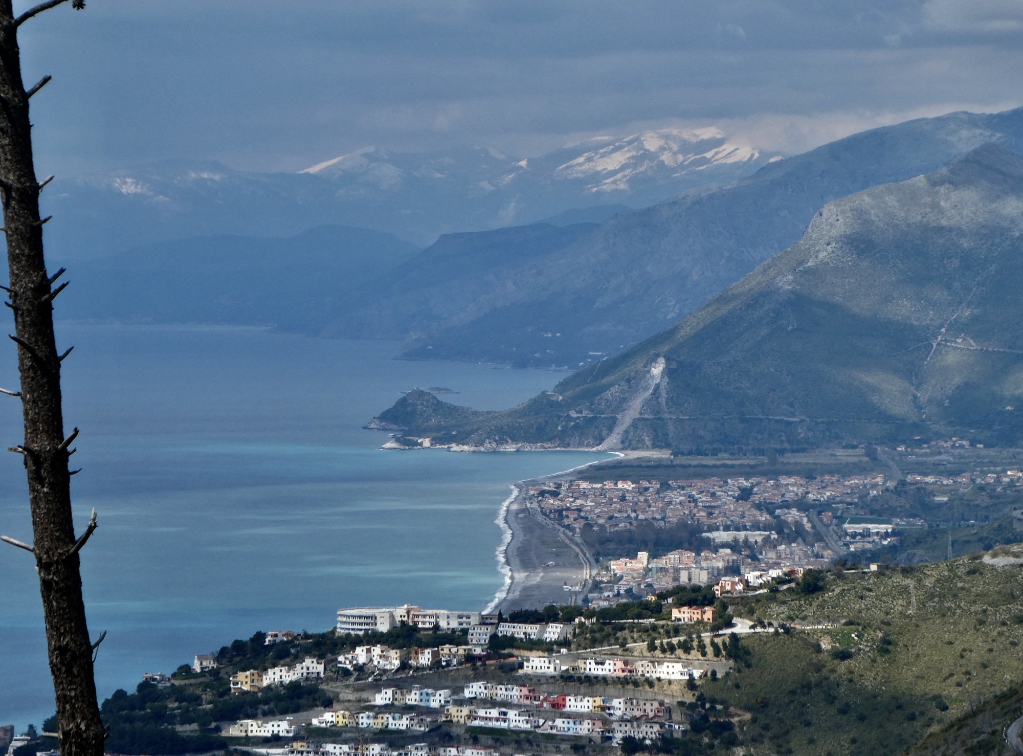 The hike we’ve ended up on is an up and down out and back - a nine miler that climbs 2,000’ in 4-1/2 miles, and loses it all back on the return. It’s a fine hike, in that we’re out of town and on quiet farm roads after only about a half mile, and after another two miles the pavement ends and we cross the border into the western edge of huge, sprawling Pollino National Park, Italy’s largest natural protected area. And it’s a spectacular hike, finding us surrounded by impressive views down along the coast and into the mountainous interior. And it’s absolutely quiet: other than a few goose and sheep guarding dogs that keep us hurrying along in a few spots we see almost no one else the whole day. Once we’re in the national park we’re passed by only one car - a jeepish 4WD with three crusty guys inside who stop beside me, roll down the windows, and then start pantomiming that they hope I have a light for their smokes.