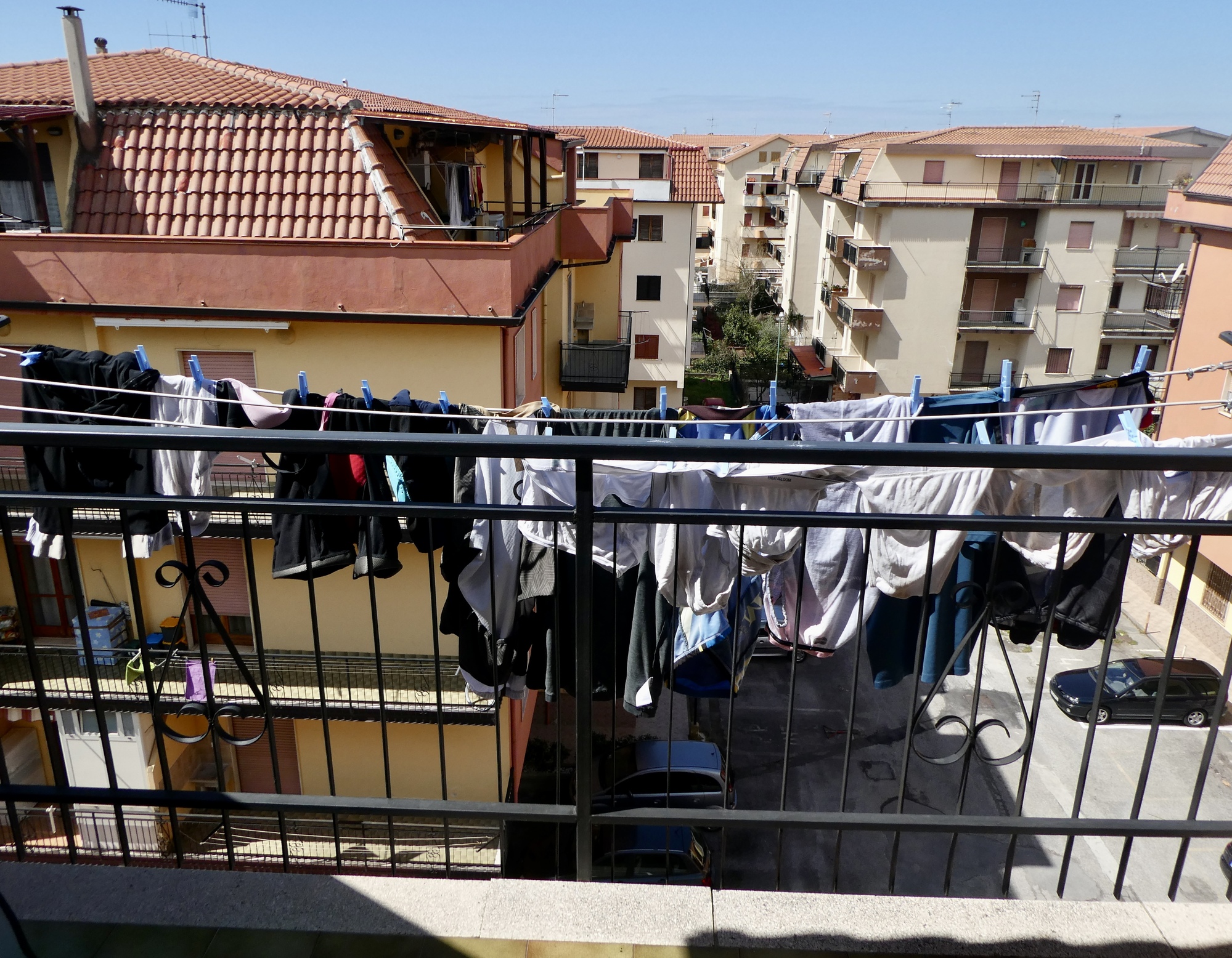 First though, there’s the other sunny day chore we’ve been saving up: it’s laundry day. We have a washing machine out on the balcony, three strands of clothes lines hanging off from it, and a bucket of clothespins. After breakfast we work together to figure out how this particular washer works, the wash gets done, and I hang the wash out to dry - feeling slightly vertiginous leaning over to clip on the clothes and staring straight down to the pavement four floors below.