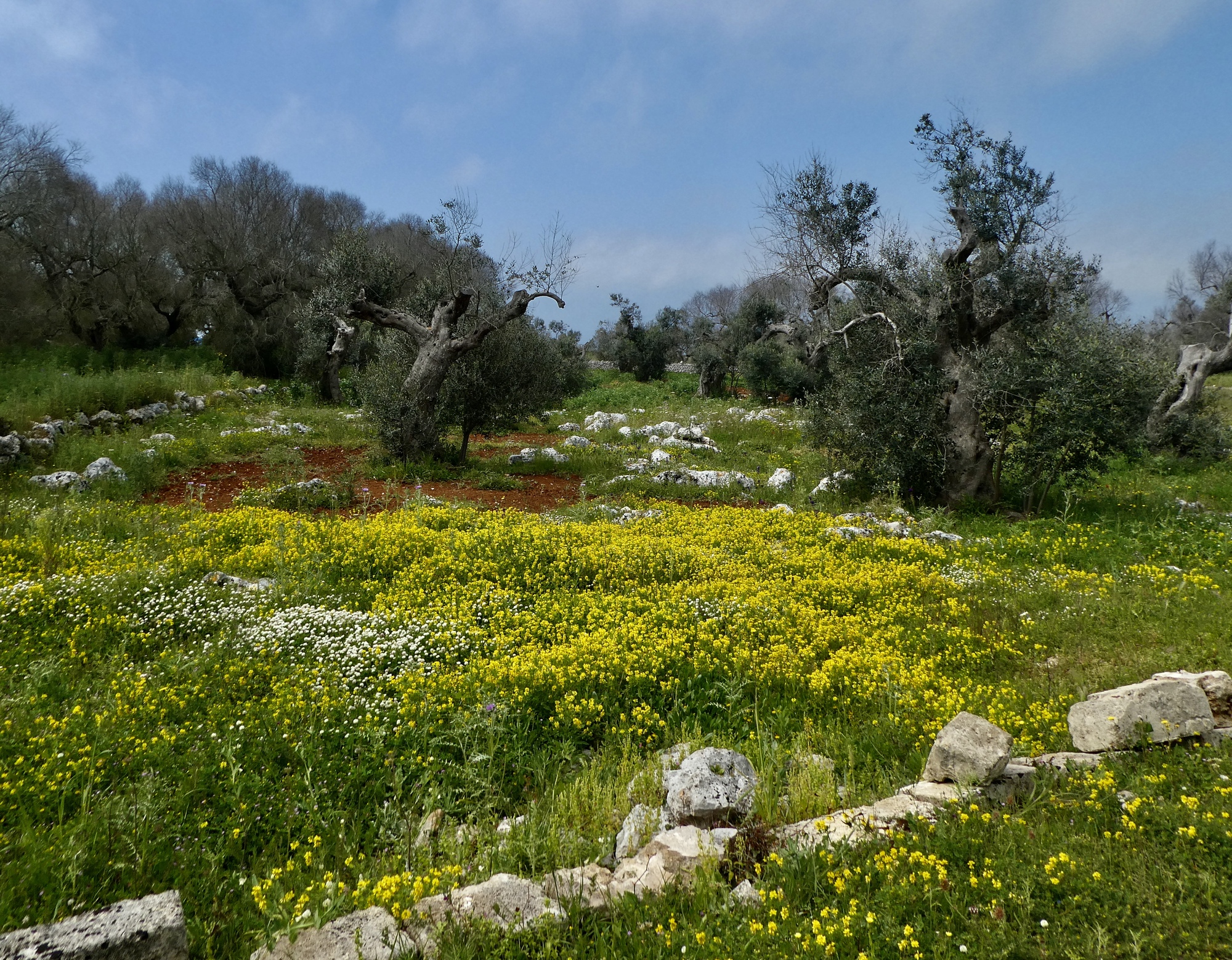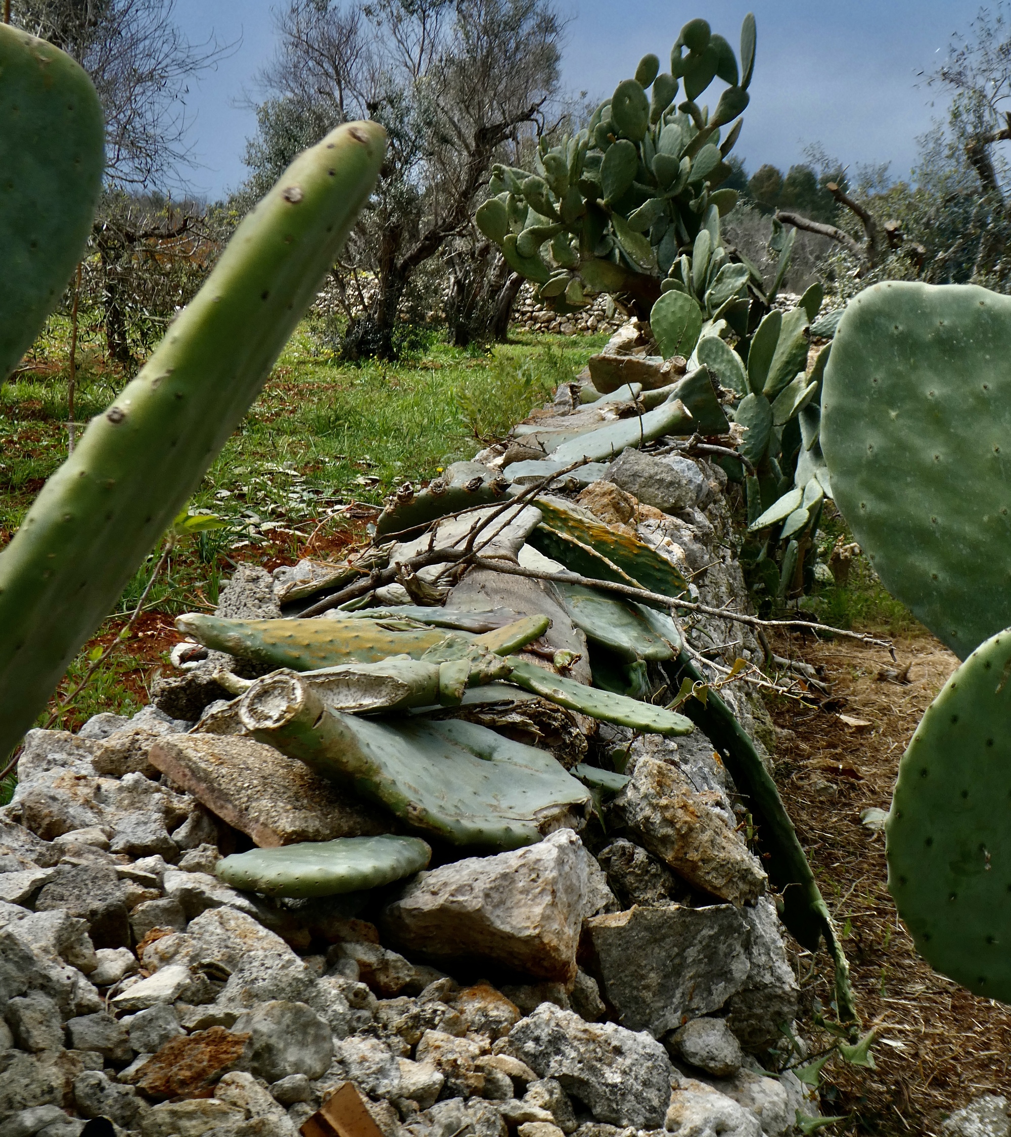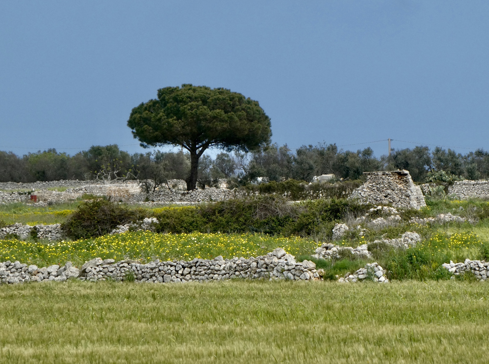 Further south in the Salento though we start seeing the other two, and with increasing frequency as we near lands end. On much of today’s walk we passed easily dozens of them - they’re really the predominant feature of the landscape once you’re out of town. The two are different forms of dry stone peasant shelters, many of them hundreds of years old and the oldest traced back over a thousand years. The truncated conical ones are pagghiari or pajari, and the trapezoidal ones are lamie. And they’re not all these disintegrating age-old historical relics. Much of the modern construction here is built in the style of the lamie in particular - squarish, tapered, terraced structures. We saw several new ones under construction as we walked along.