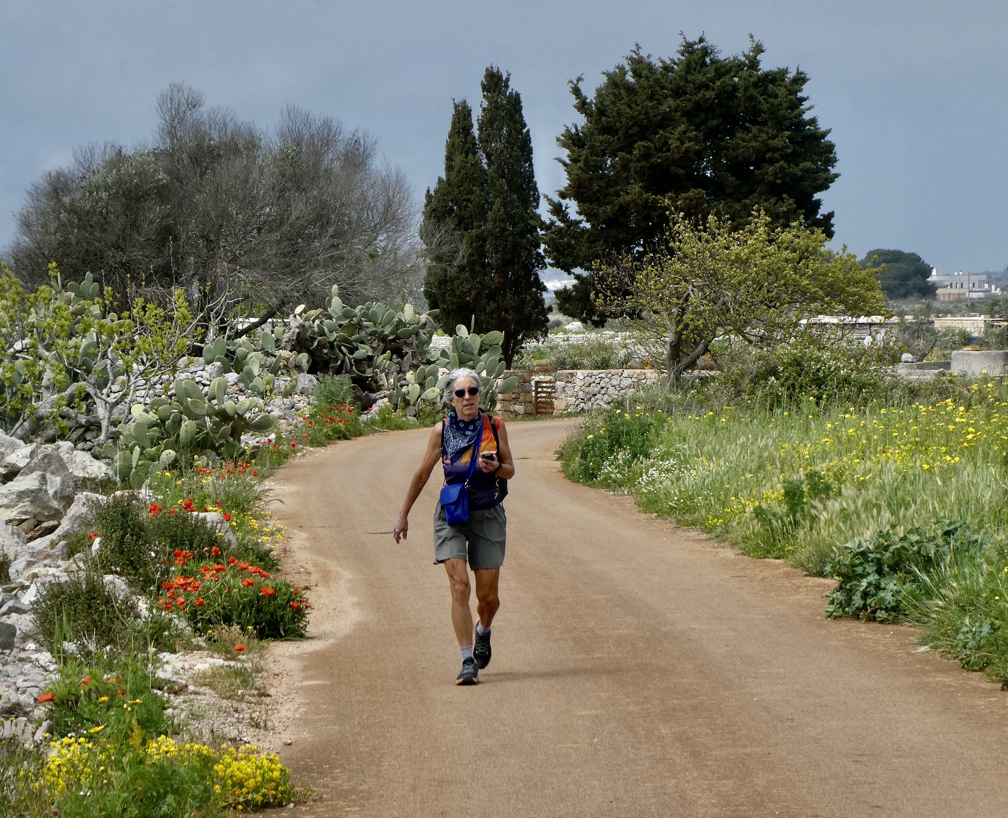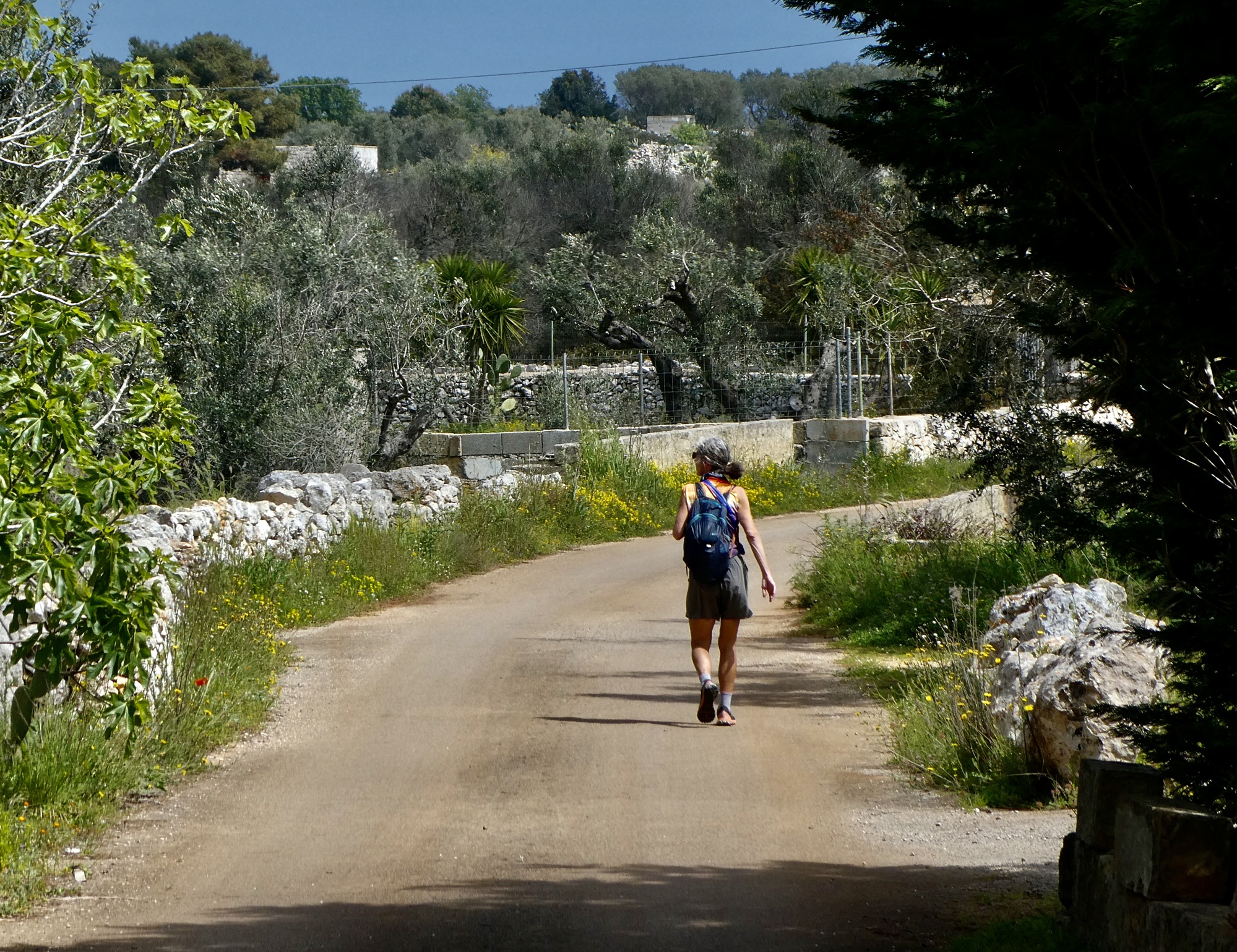 Leving the lighthouse behind, we walk more or less straight north up the peninsula. After climbing for about a half mile the route levels out into an open landscape characterized primarily by stone walls, lamie, and pagghiari. It’s an out and back, so walkers are free to set their own pace.
