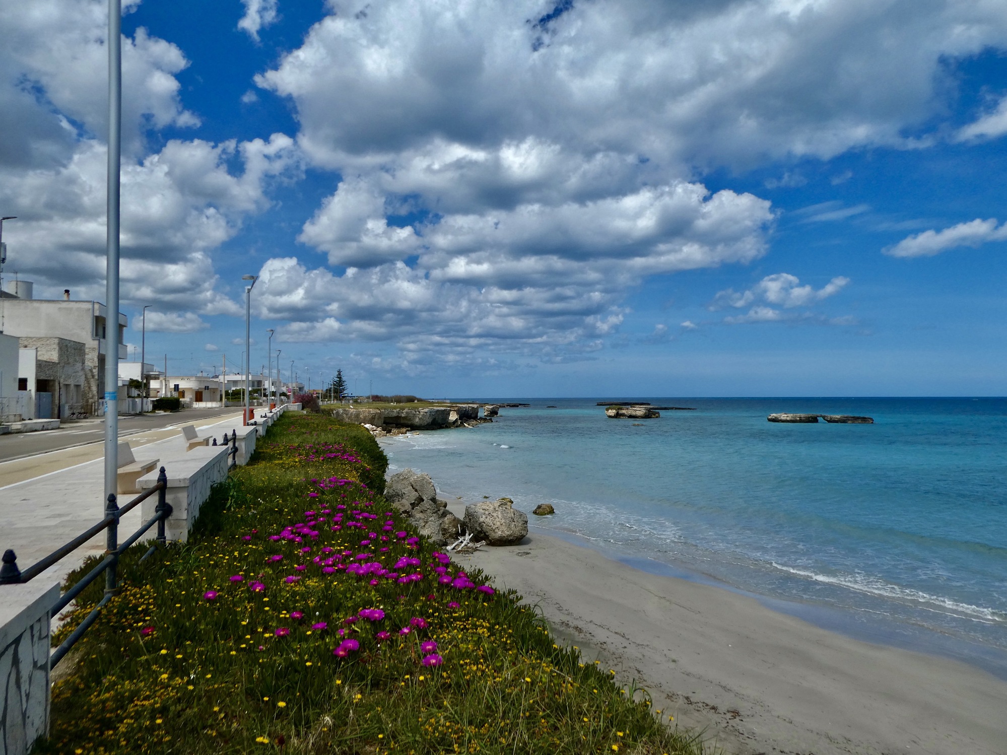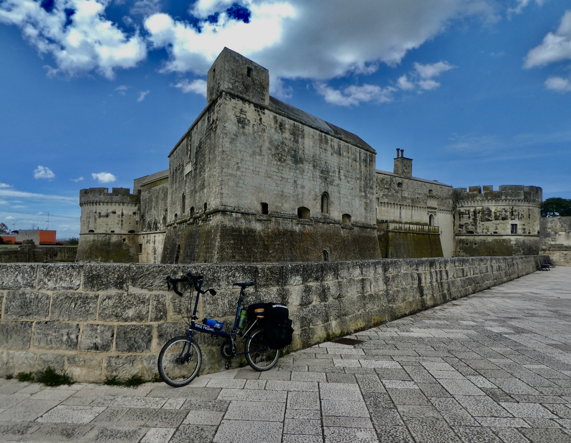 We’d have been quite happy to stay in Otranto for a second night if it weren’t for the worsening weather forecast. There’s been a lot of flux in the forecasts over the last few days, but they’ve held constant on the report that today will be dry and tomorrow not. With this in mind we’re off to Lecce where we’re booked for a two night stay with the plan of sitting out the rain tomorrow. Beyond that the near-term details are totally up in the air, with all of our bookings for the coming week canceled. We’ll just make up the plan one day at a time as we see what each day brings.