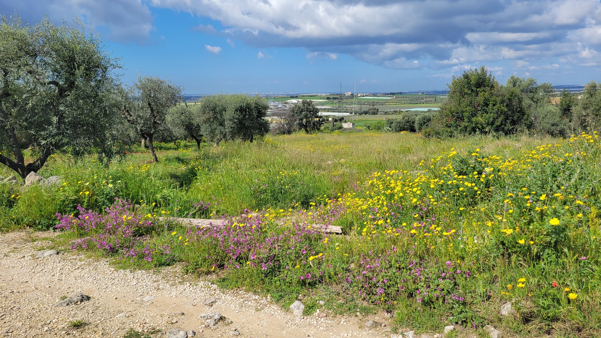 For myself I’ve put together a 30 mile balloon-shaped route that bikes northwest through the flats before coming to the base of a ridge and climbing up a plateau. Nothing too strenuous, though it includes about a mile climb at 10-11% ascending the face of the plateau, the most challenging climb I’ve tackled since leaving Sicily. If I’d been paying more attention when drawing it I’d have reversed the route, since the climb going the other direction is more gradual.