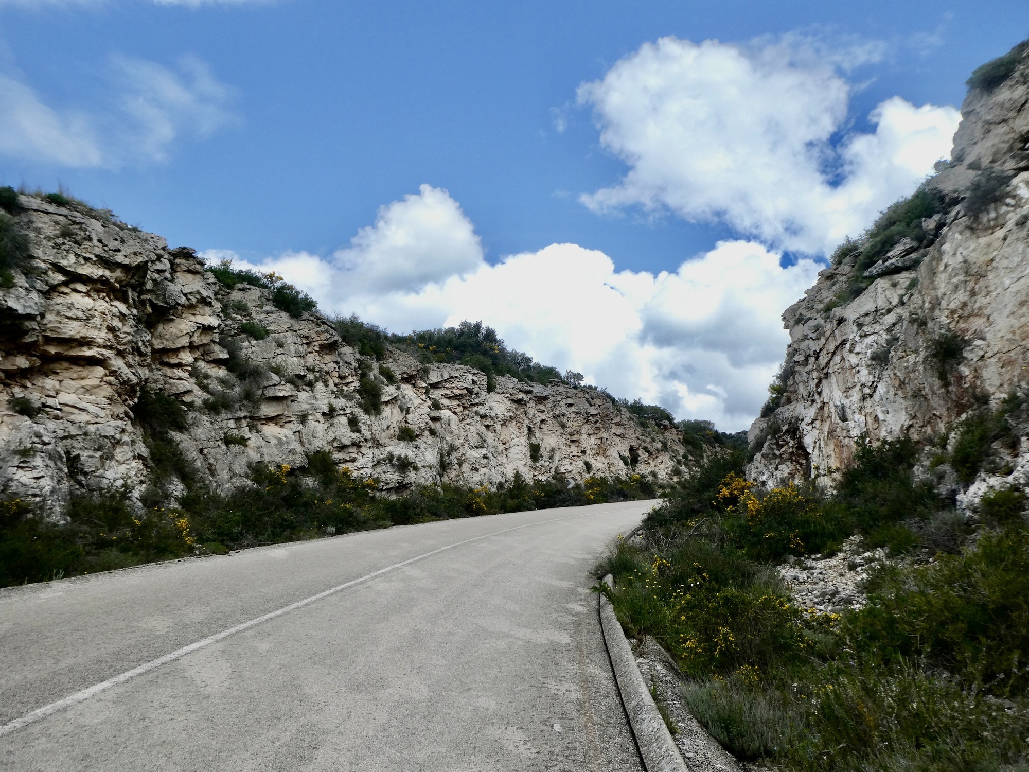 After a short drop out of town it’s a very lazy climb for the next seven miles, passing old olive trees and vineyards wrapped in plastic most of the way. The vineyards are a new touch and it’s of course nice to see so much more sun this morning, but other than that it’s similar to the country we’ve been passing through for the past several days so I don’t find many reasons to stop.