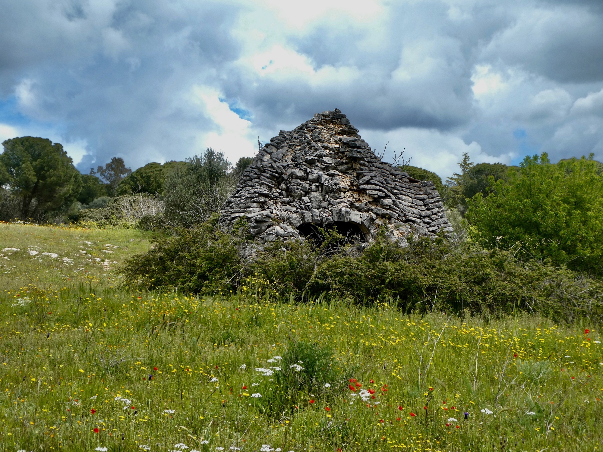 It’s much different up on top. There’s a lot to see - a garrigue-like landscape with a profusion of wildflower displays. Most surprisingly, I see trulli! We left the coastal plain before entering the Itria Valley where they’re prolific around Alberobello especially, so I didn’t expect to see any on this tour. I didn’t realize they could be found in the uplands too.
