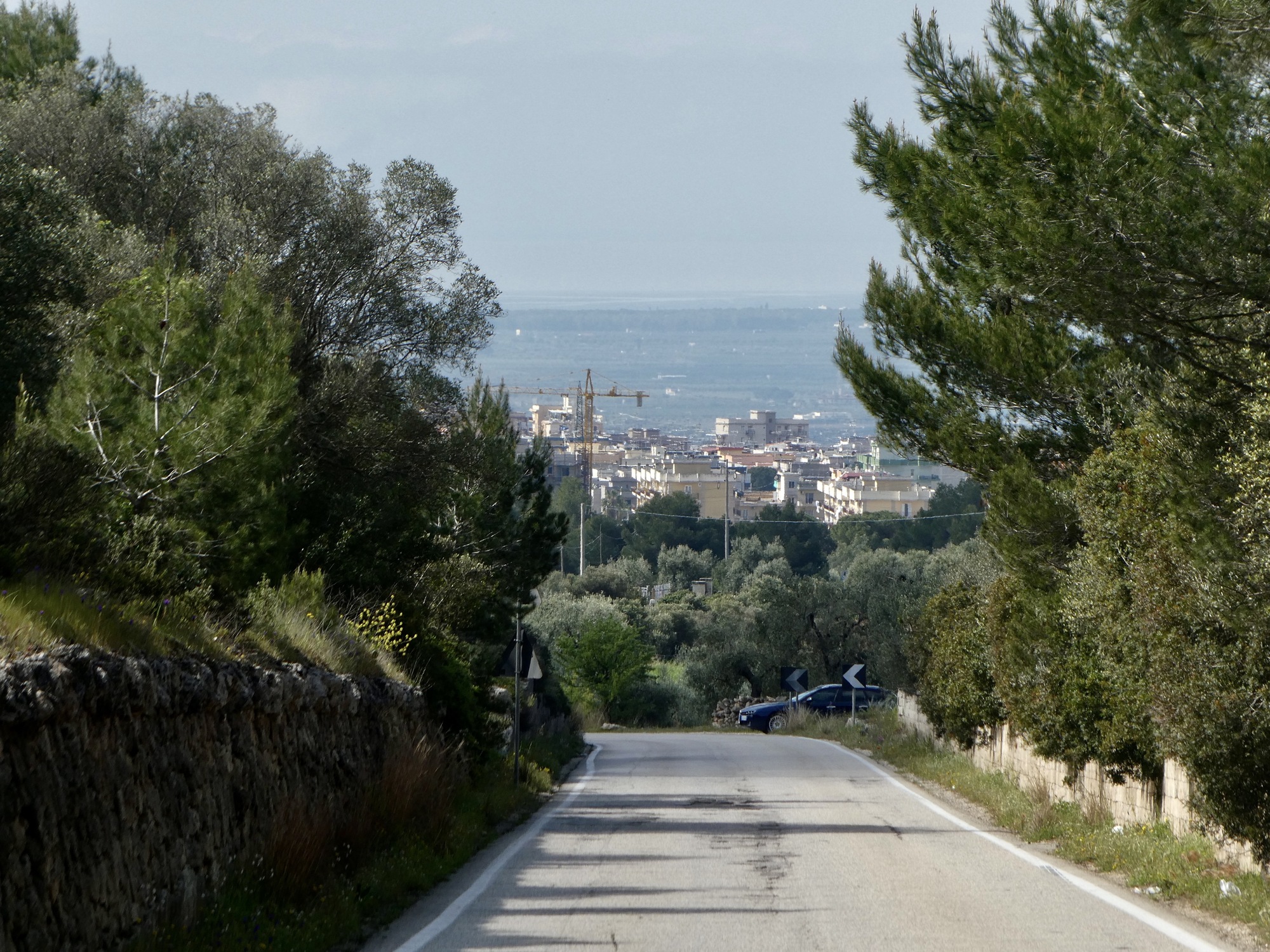 Once on top, I begin a 25 mile loop across the top of the plateau. I’m within or biking along the border of the Terre della Gravine regional natural park, created in 2005 to protect this southern part of the Murge, the karstic landscape that covers much of the border region between Basilicata and upper Puglia. The Murge is a fascinating area hacked up by deep ravines such as the one I’ve been climbing away from this morning. We’ll be in the Murge for most of the coming week before dropping down to the Gargano promontory. Which is wonderful, because these uplands are such excellent cycling country.