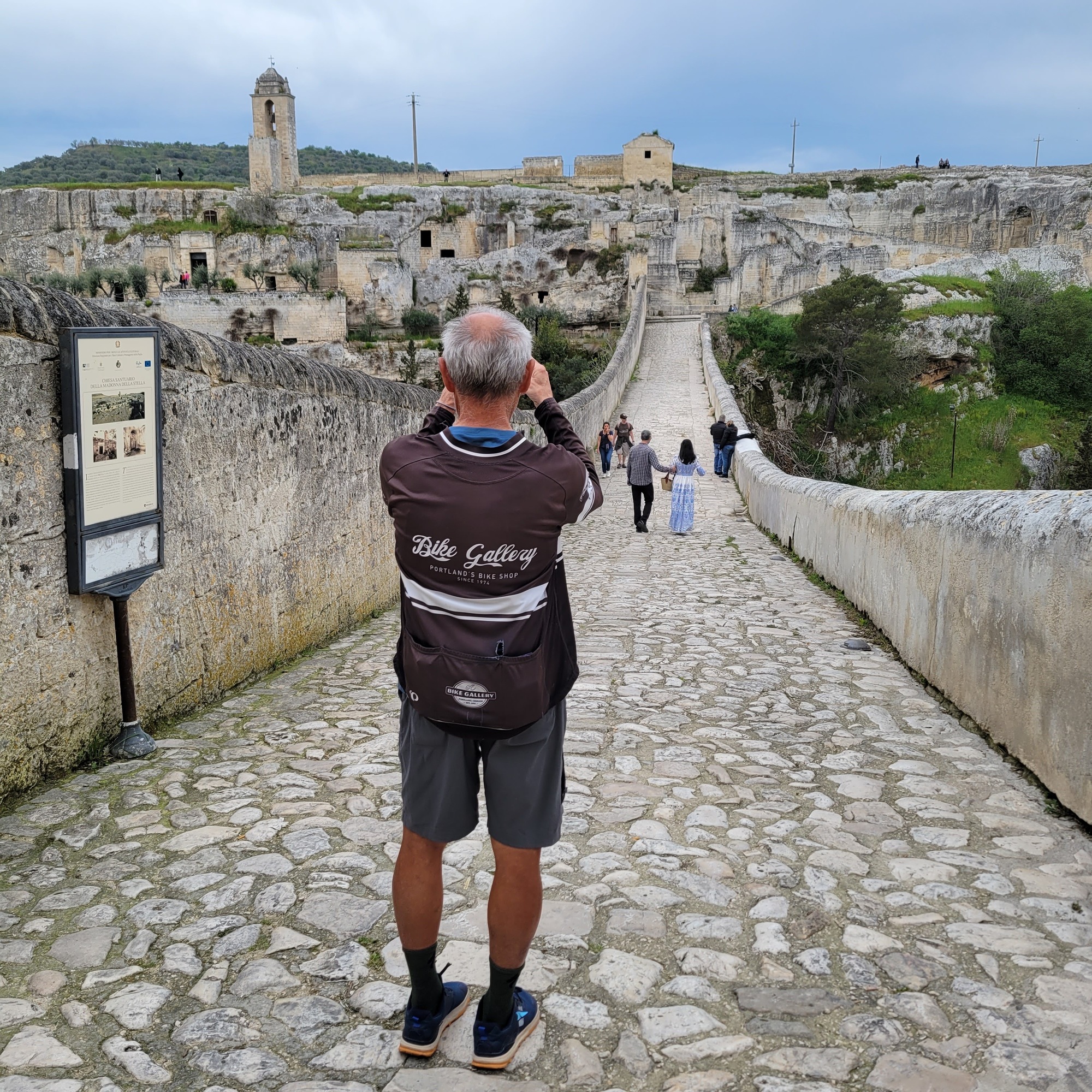 When I planned out this stay I imagined taking a bike ride west into hilly Basilicata; but once we arrived and looked around it felt obvious that if we only had one full day here it was best spent on foot. Our thinking on this was reinforced yesterday by carrying the bikes up a flight of steep and narrow stairs to our apartment - the idea of carrying them down and up again unnecessarily wasn’t appealing. We parked them on the narrow balcony outside overlooking the famous bridge and gave them both a break.