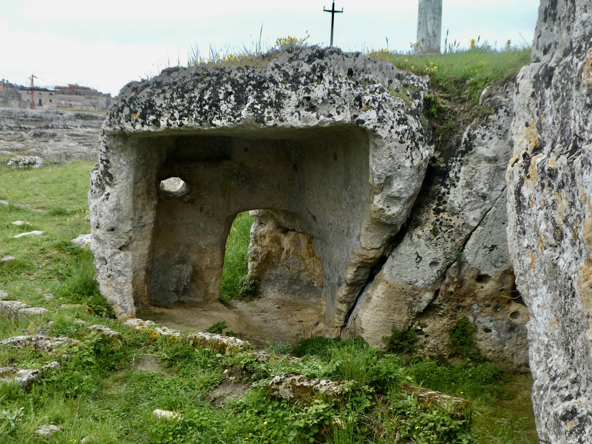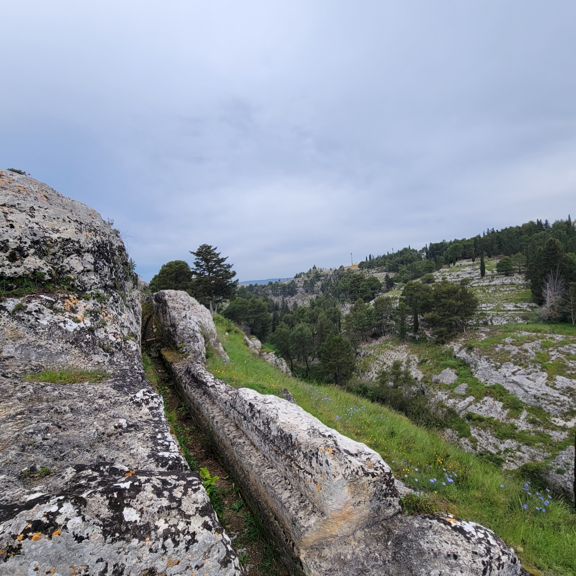 The day didn’t go exactly as we imagined when we first plotted it out. With the prospect of showers or a brief thunderstorm in the early afternoon, we decided to each take a walk in the morning and return in time for an afternoon lunch during the potentially rainy period. We mapped out different routes for ourselves - a longer one for Rachael of course, climbing up into the hills on the other side of the gorge while mine circled back through town - but they both began with an exploration of the west side of the gorge and the archeological park with its remains from prehistoric civilizations.