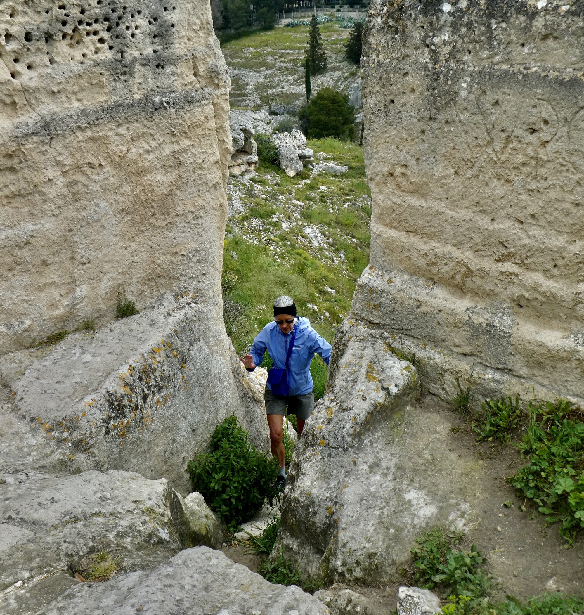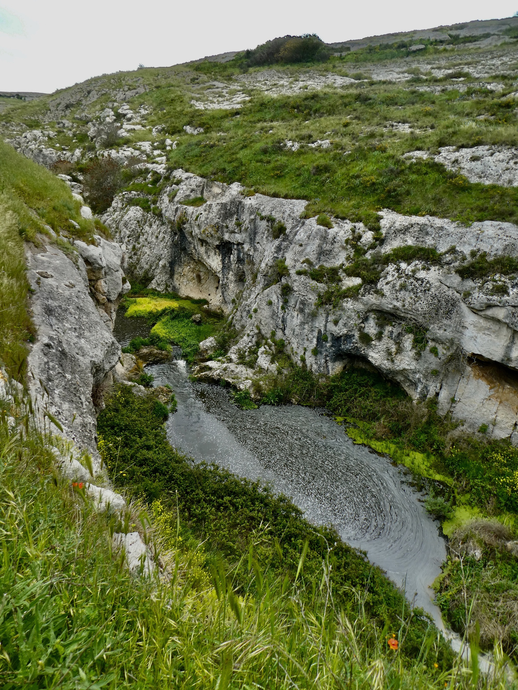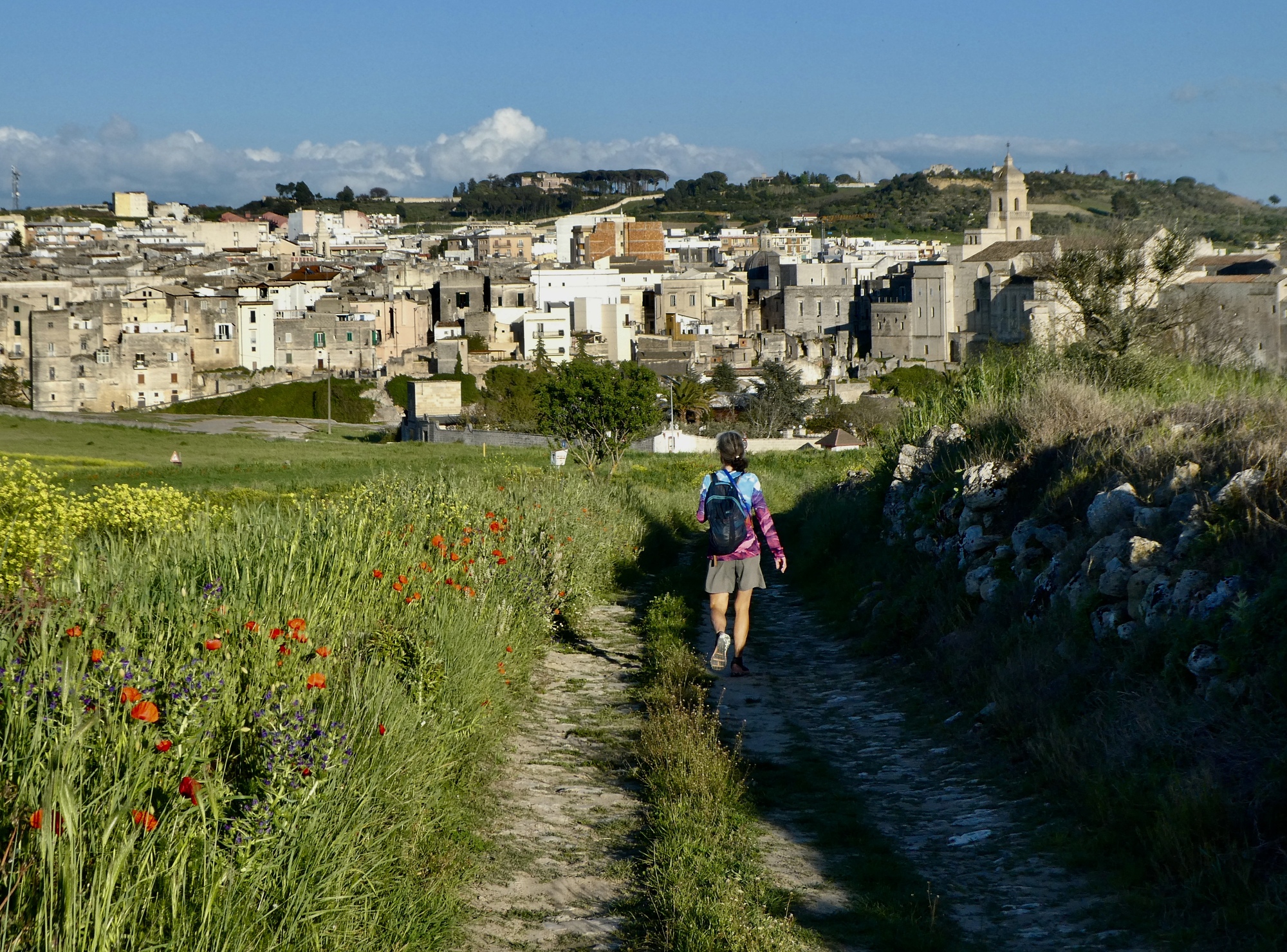 This morning’s walk along the gorge was spectacular, but the afternoon’s surpassed it - easily the best hike of the tour so far. We picked up on the second half of Rachael’s morning route and headed west into the hills on a well marked, well maintained walking trail: the Via Peuceta, the 170 km walking route from Bari to Matera. We only covered a few miles on it today, but judging by this section it would be a spectacular route for a much longer walk. If we used Gravina as a base again someday, we could probably make Matera on. Long day and take a bus or taxi back.