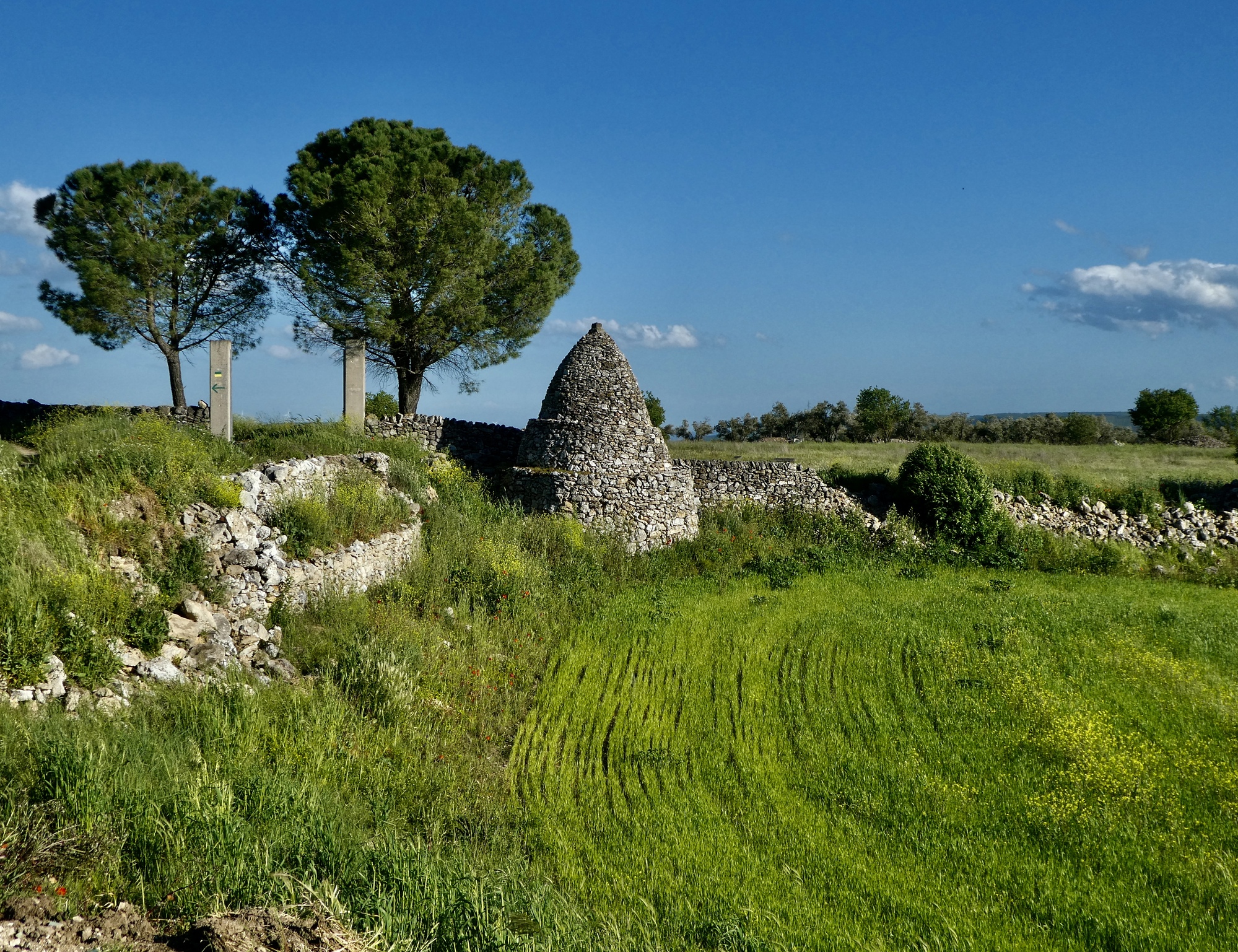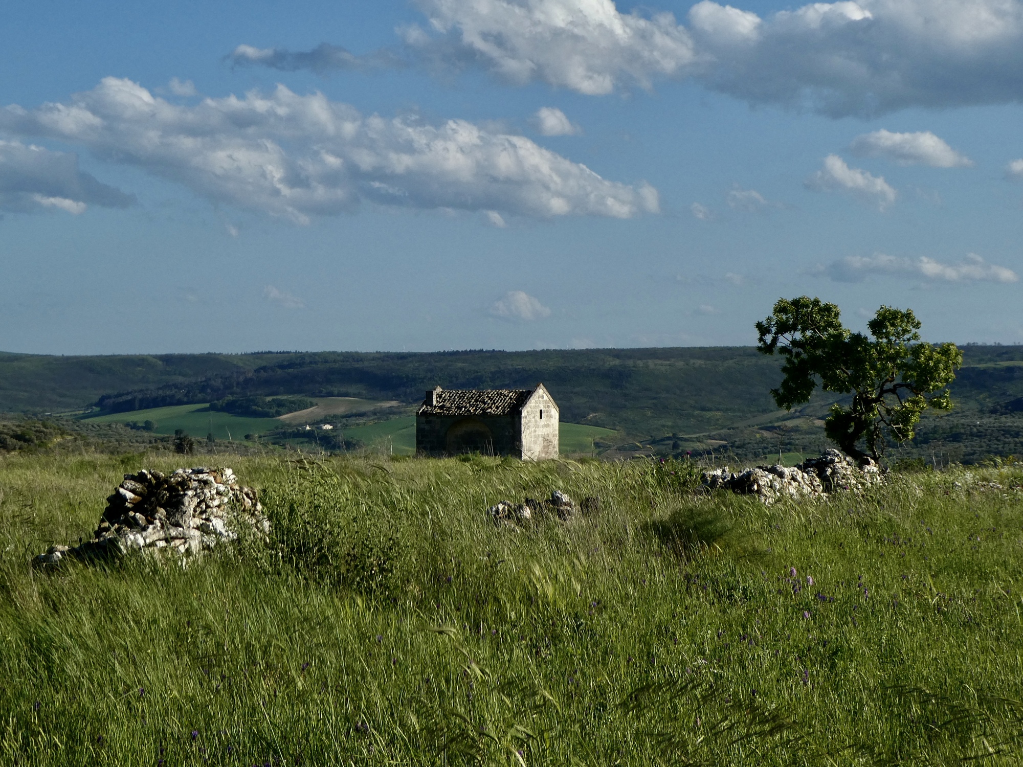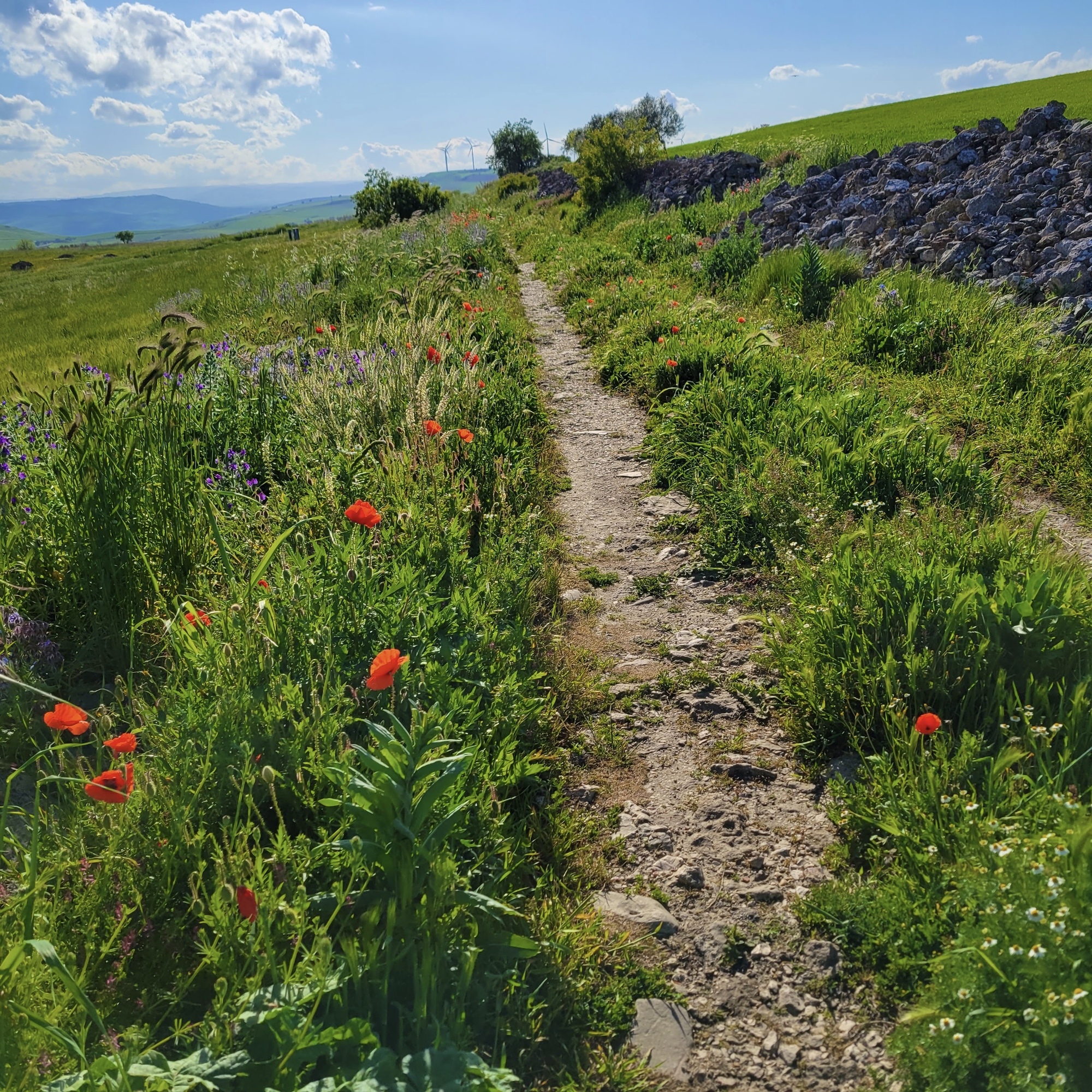 This morning’s walk along the gorge was spectacular, but the afternoon’s surpassed it - easily the best hike of the tour so far. We picked up on the second half of Rachael’s morning route and headed west into the hills on a well marked, well maintained walking trail: the Via Peuceta, the 170 km walking route from Bari to Matera. We only covered a few miles on it today, but judging by this section it would be a spectacular route for a much longer walk. If we used Gravina as a base again someday, we could probably make Matera on. Long day and take a bus or taxi back.