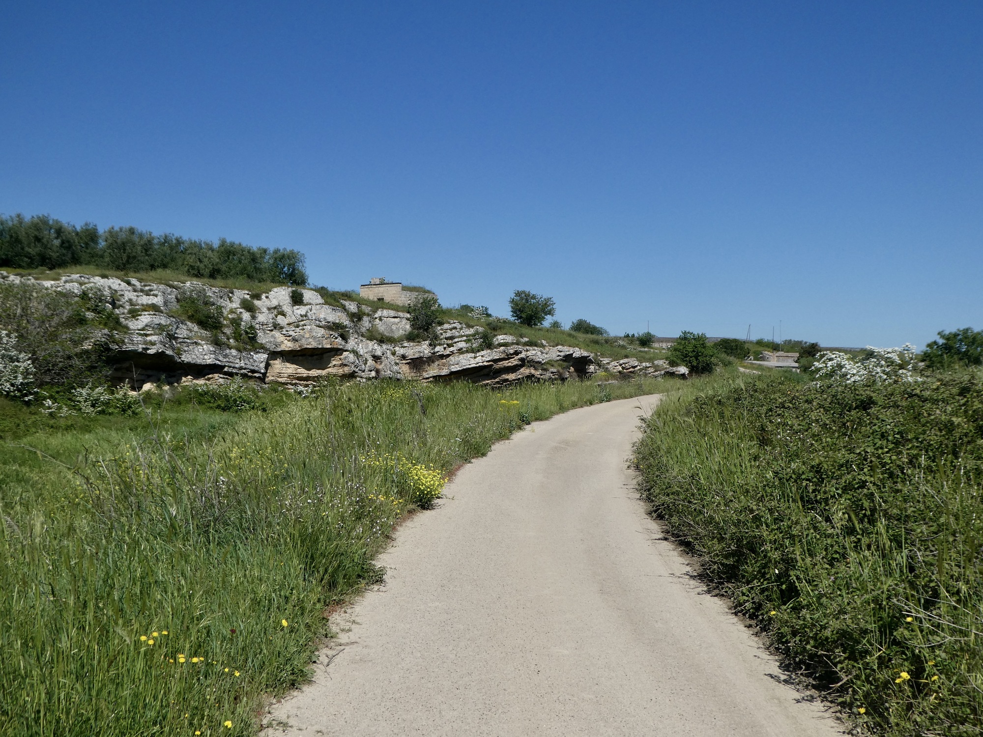 Our excellent farm road comes to an end just beneath Canosa di Puglia at its junction with SP231. The first half of the ride was idyllic, but the second isn’t. In fact it’s pretty crappy, one of the least pleasant riding experiences of the tour. We’re on busy and shoulderless SP231 for a couple of miles, looking forward to our turnoff onto another minor road; but in fact that road stinks too, with a surprising amount of traffic - including some very dirty and uncomfortable traffic, a series of gravel trucks shuttling to and from a nearby quarry. The ride as a whole deserves no photographs, and gets none. There is video though, including of us passing those Dutch tourists we finally catch up with on the only climb of the day.